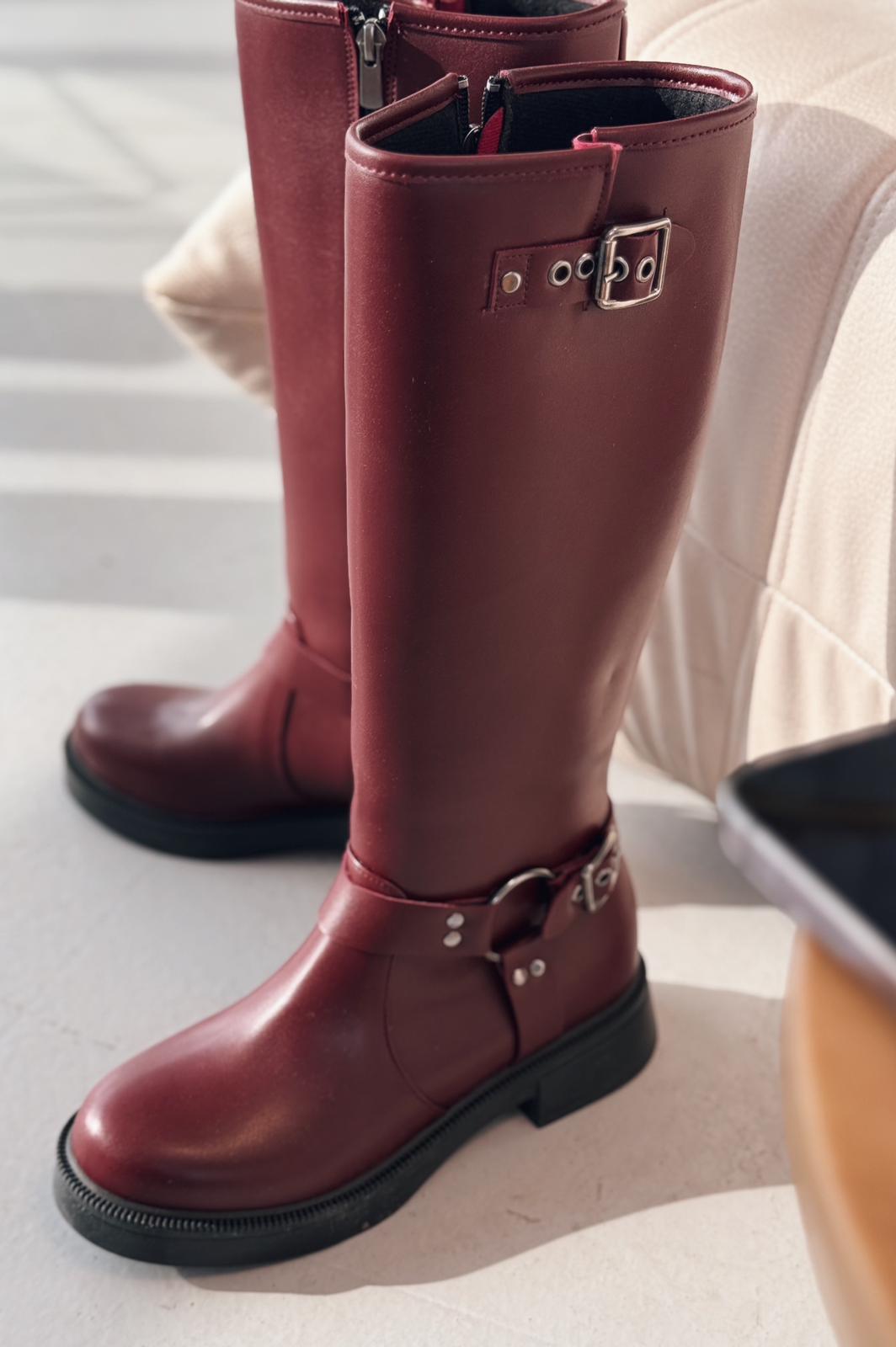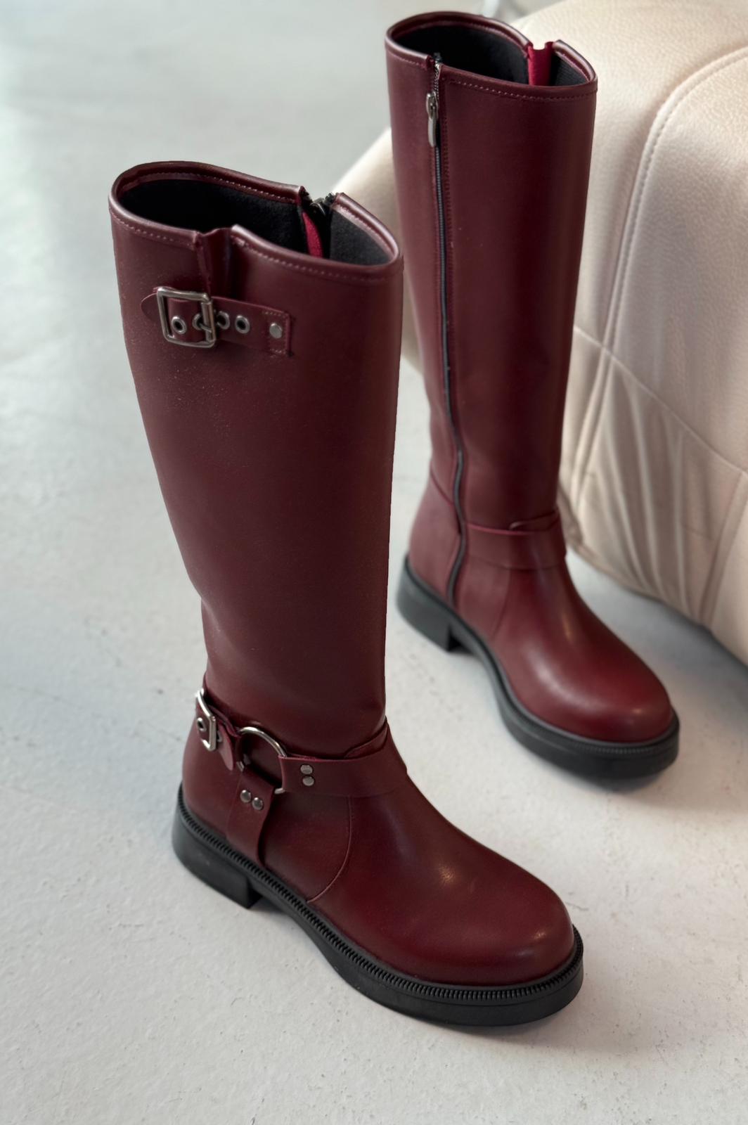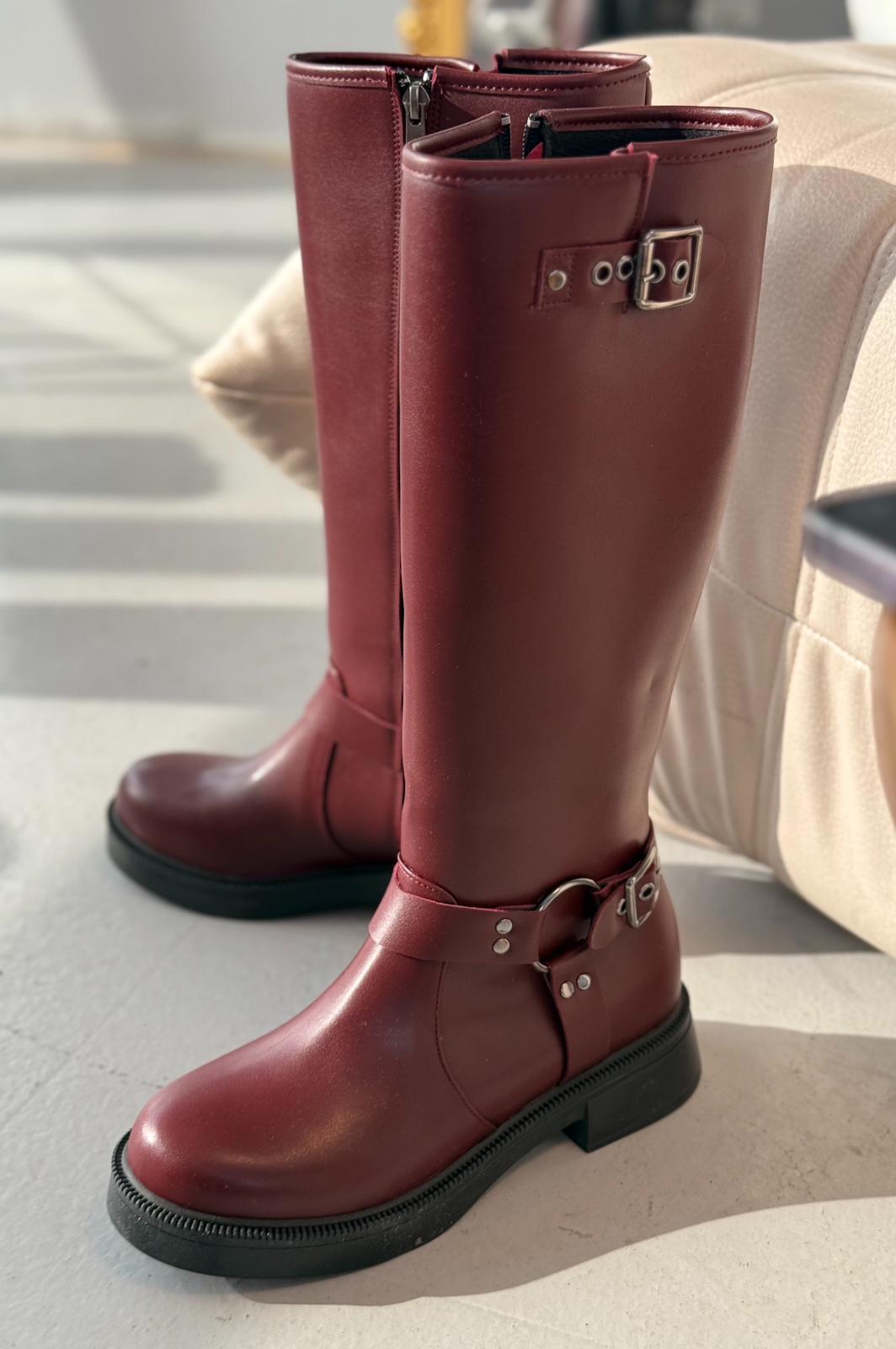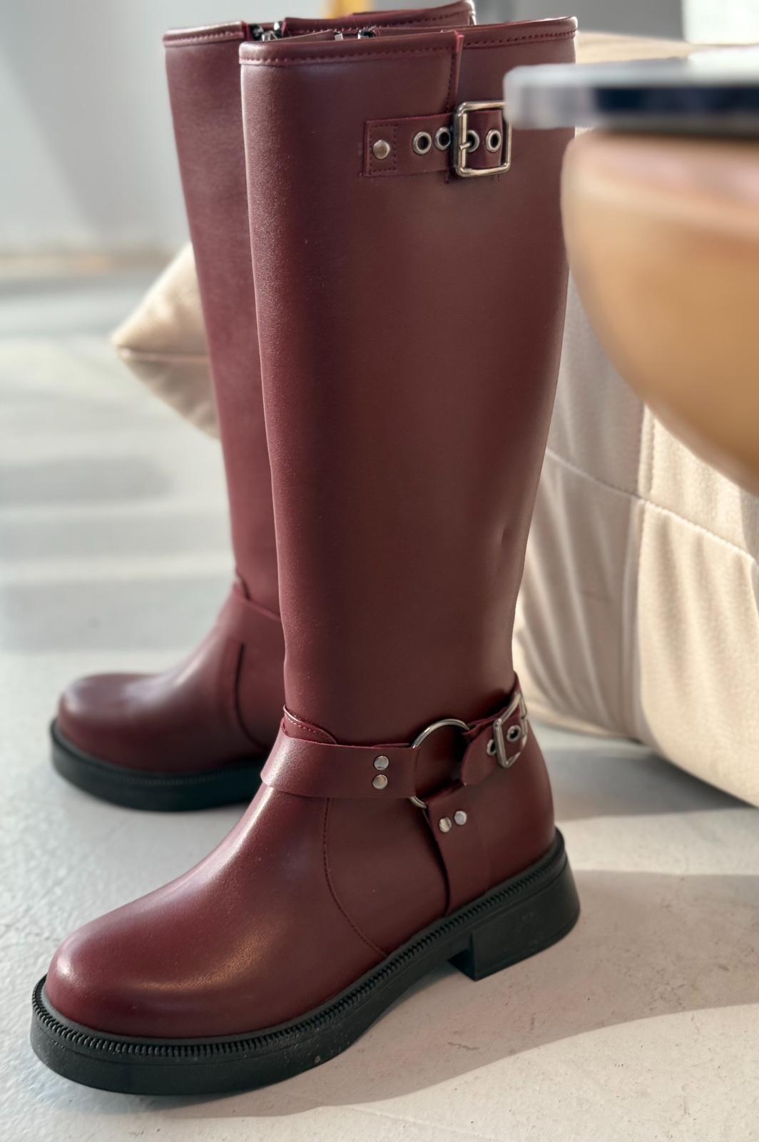 Nylix Bordo Toka Aksesuarlı Fermuarlı Günlük Kadın Çizme