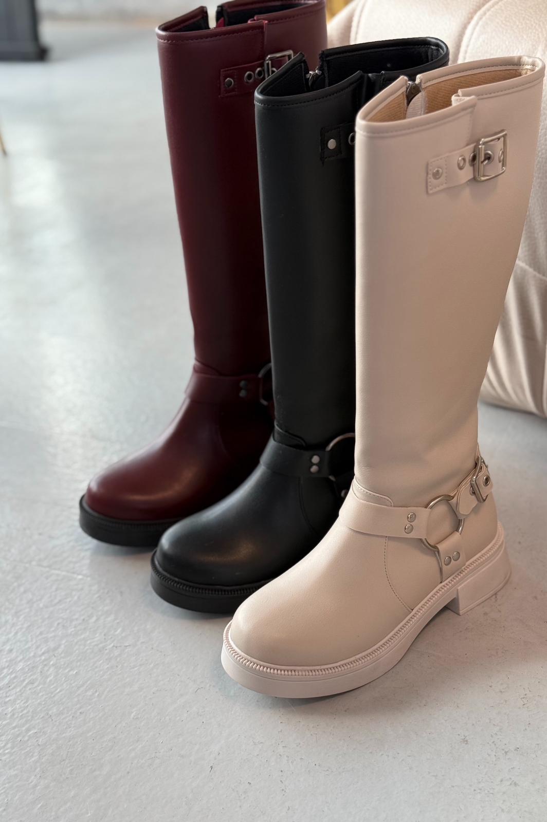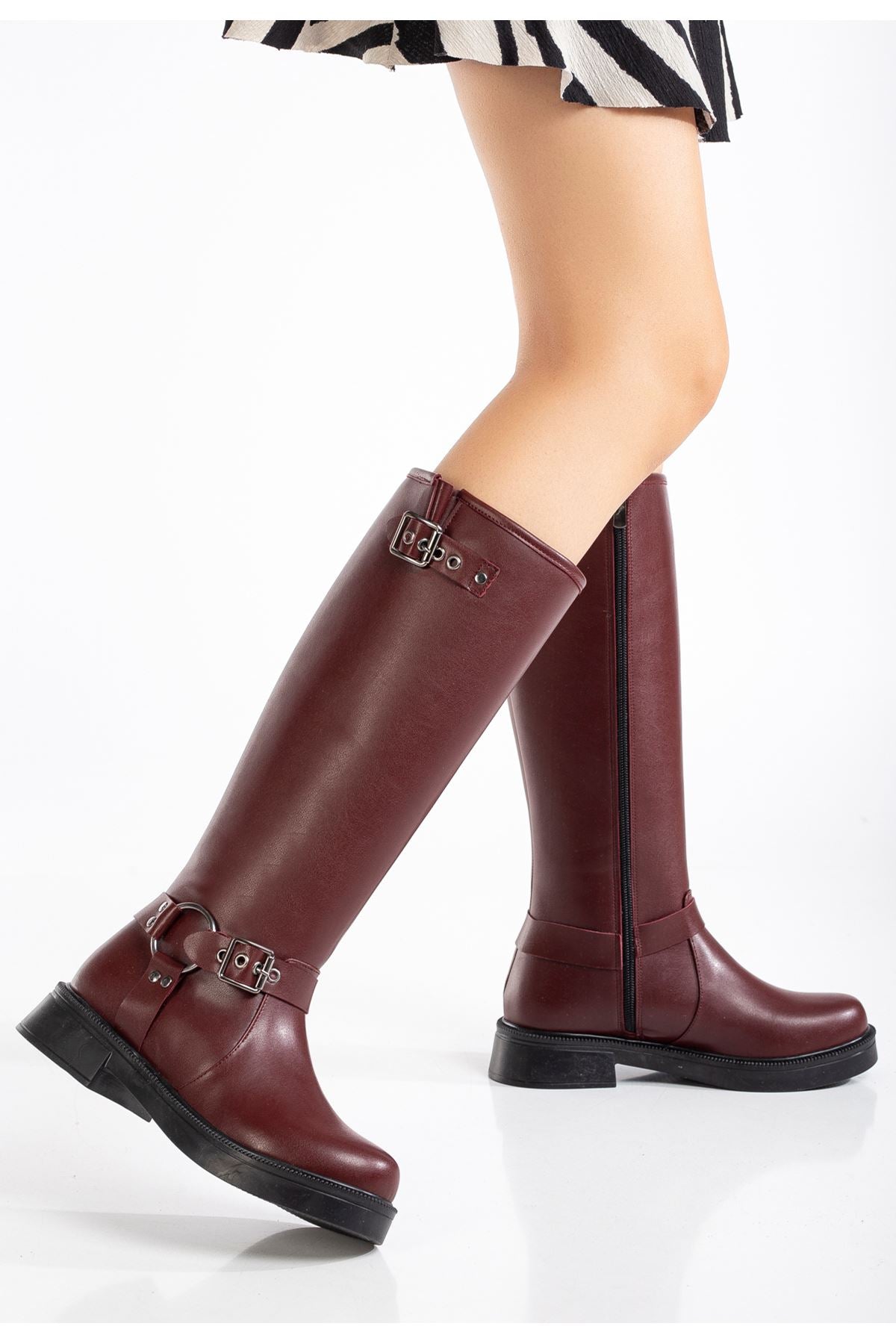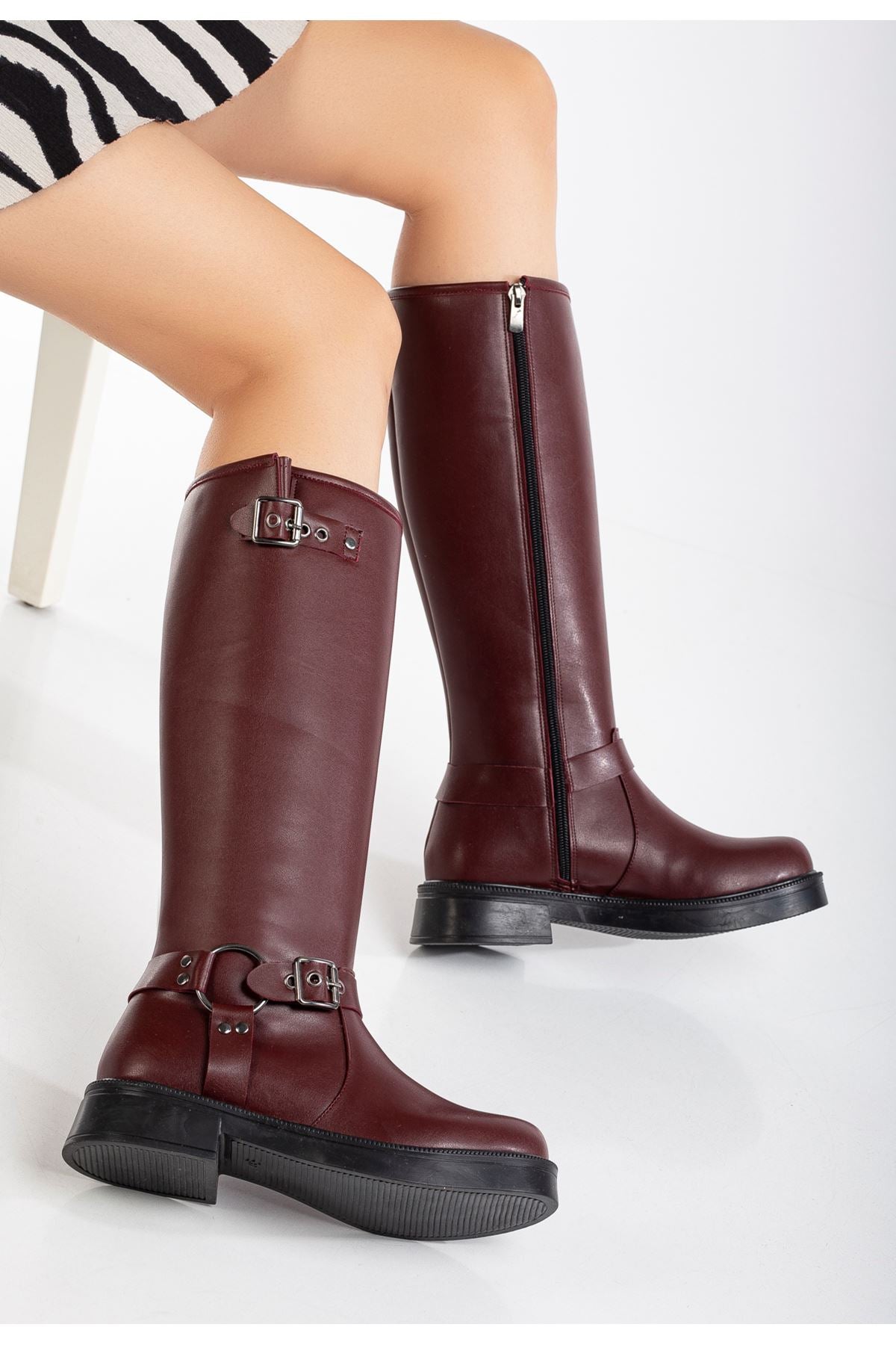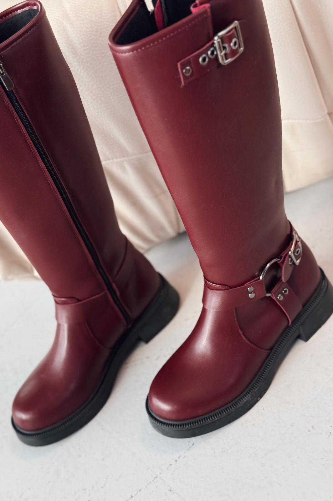 Nylix Bordo Toka Aksesuarlı Fermuarlı Günlük Kadın Çizme