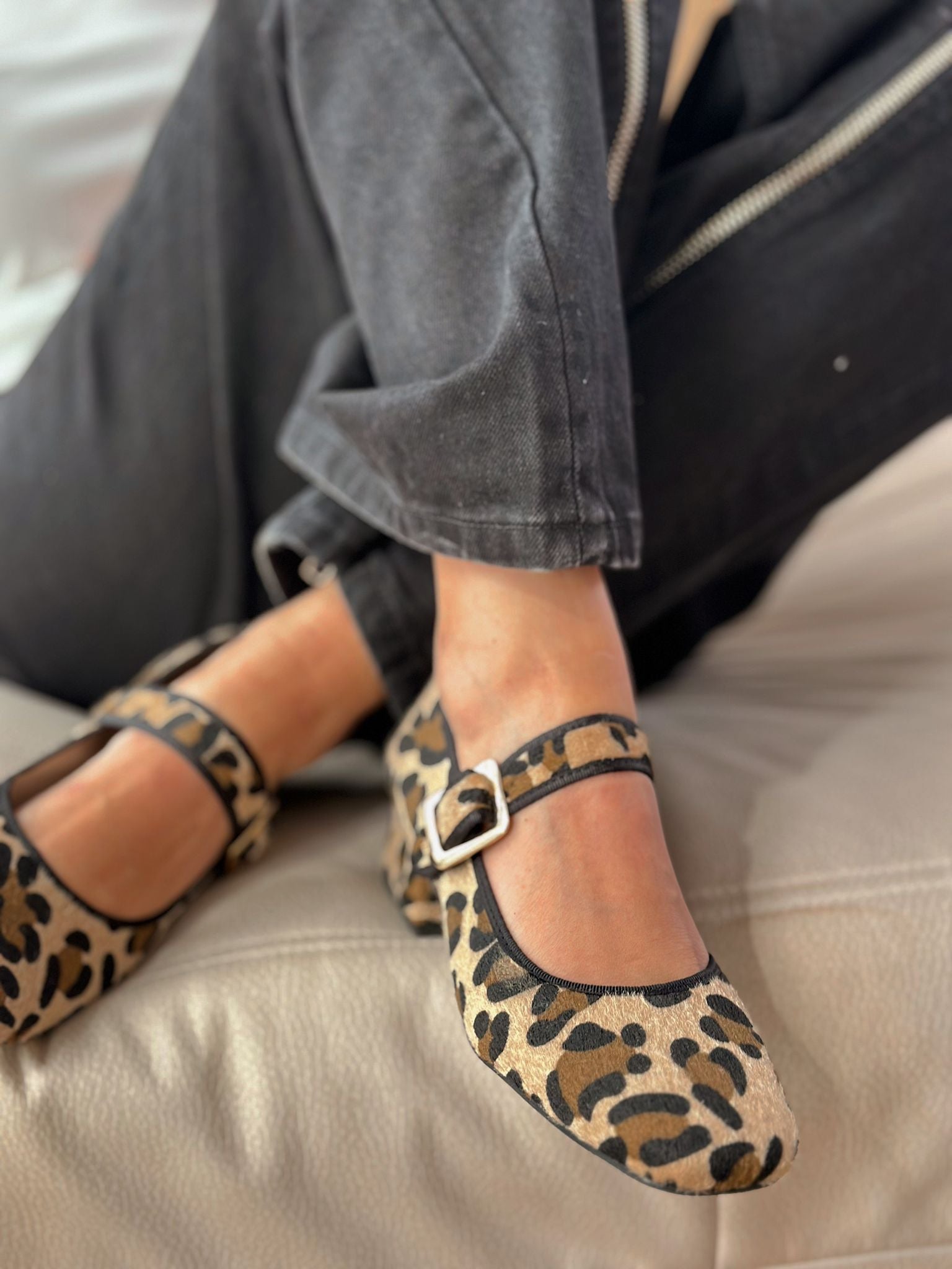 "Leopar Desenli Kısa Topuklu Mary Jane ayakkabılar, sezonun öne çıkan fashion trendlerinden biri olarak gardırobunuzun en gözde parçalarından biri olacak. Leopar deseni ile stilinize cesur bir ifade kazandırabilirsiniz. Kısa topuğu sayesinde günlük kullanım için ideal olan ‘Odenca’
