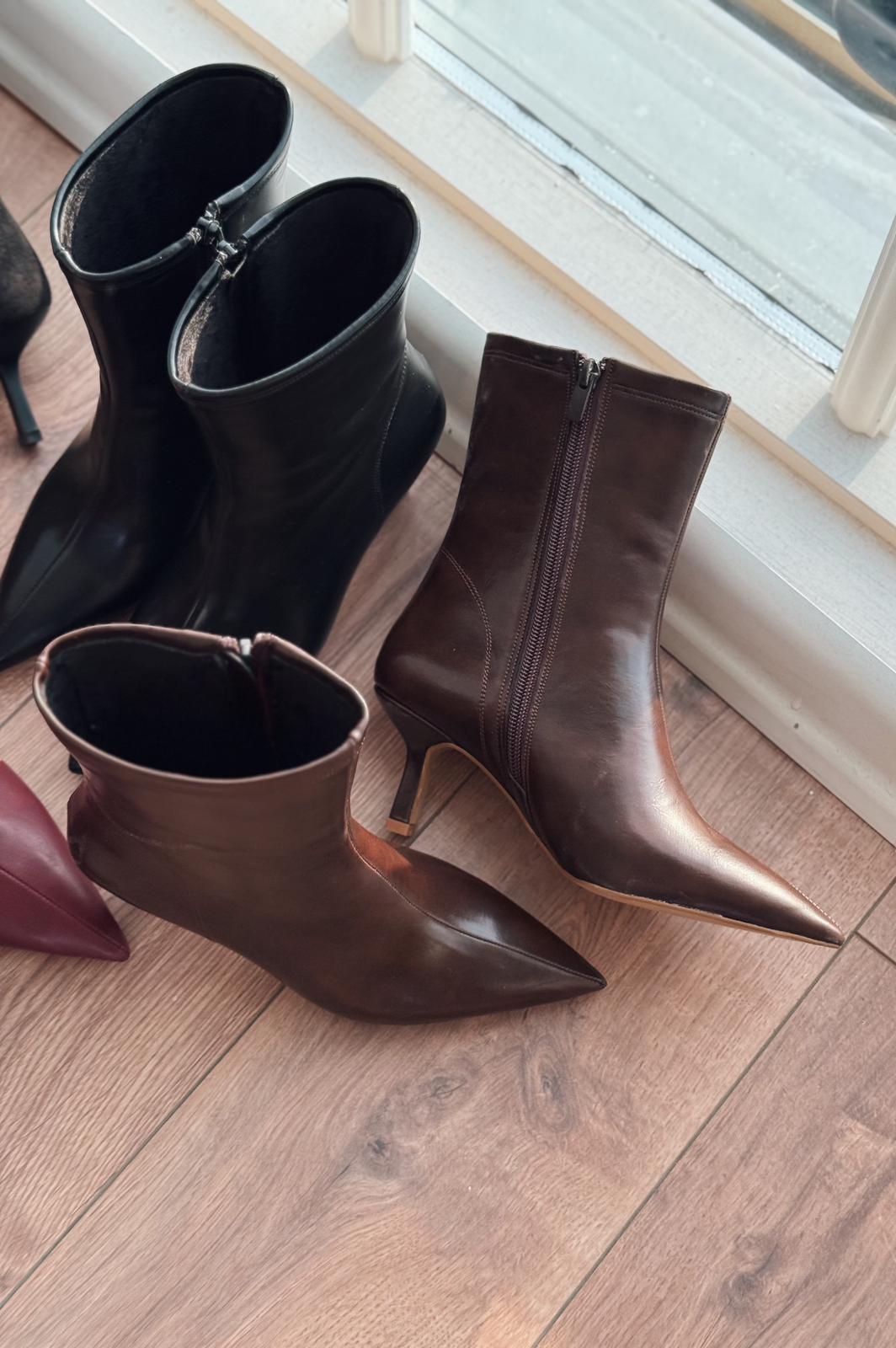 Orvex Kadın Mat Deri İnce Topuklu Bot Acı Kahve