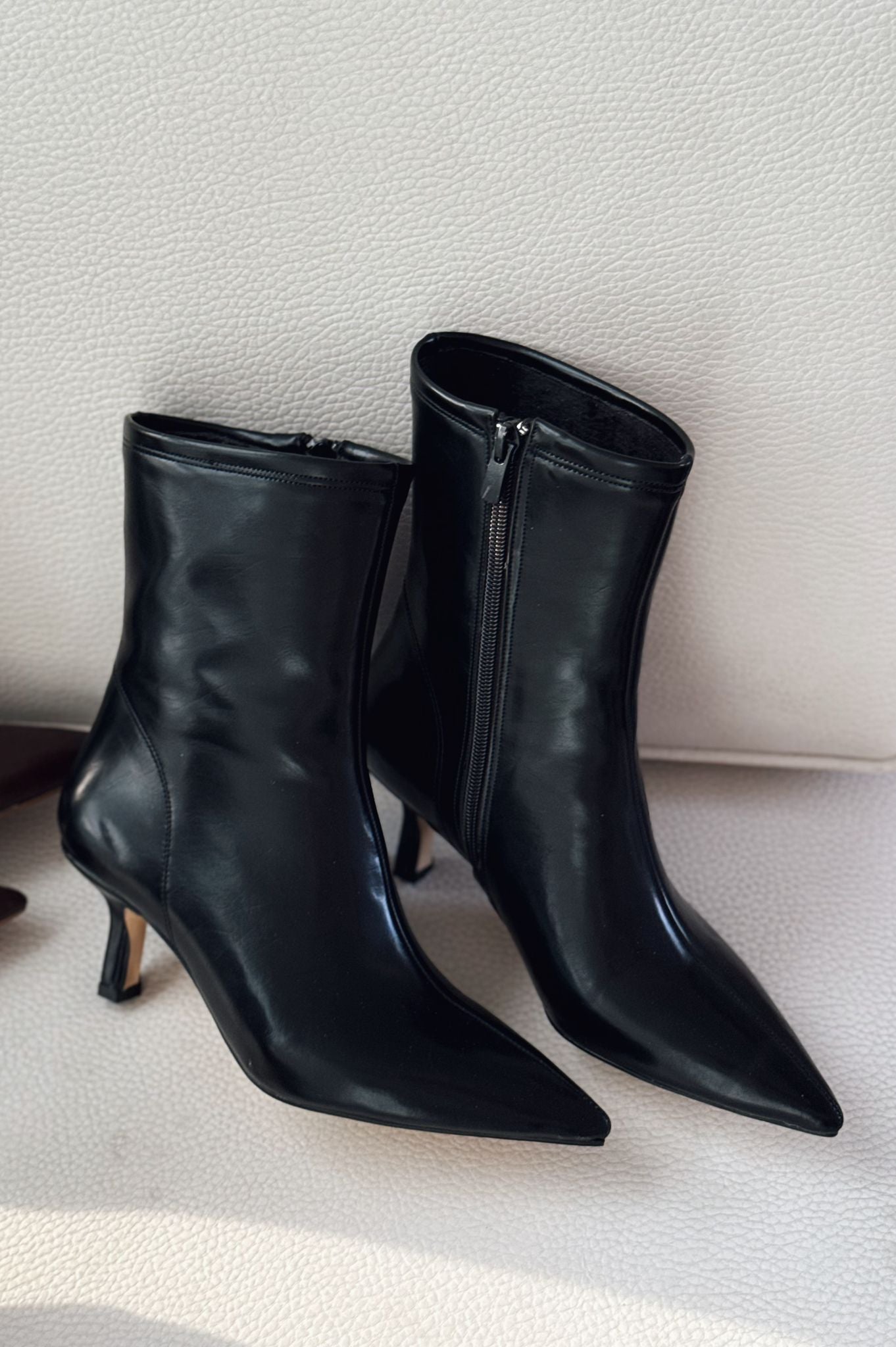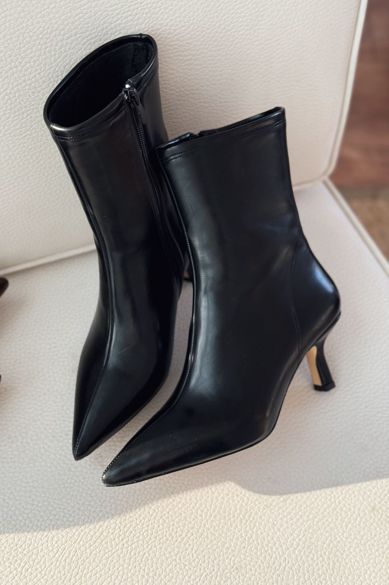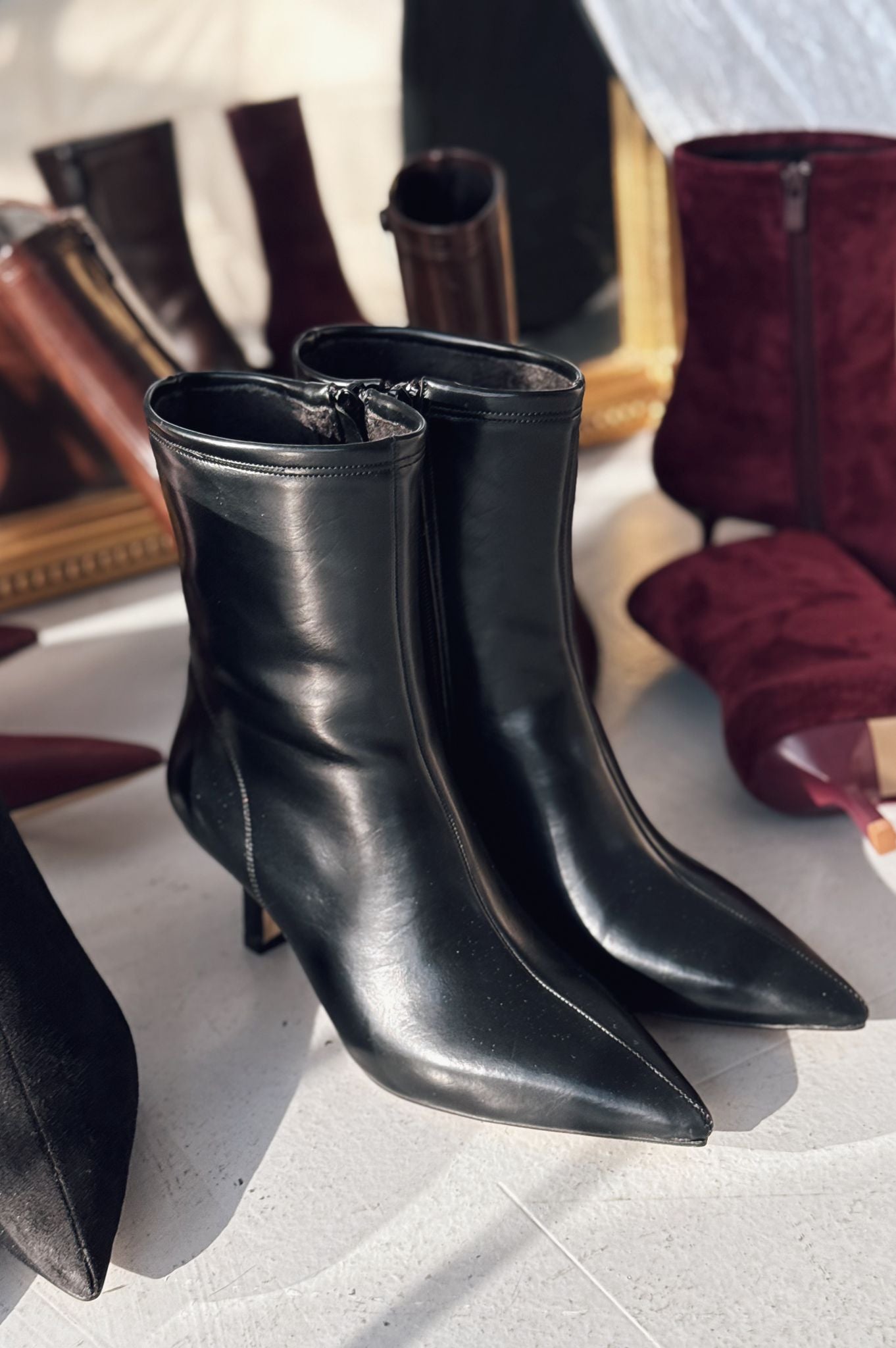Orvex Kadın Mat Deri İnce Topuklu Bot Siyah