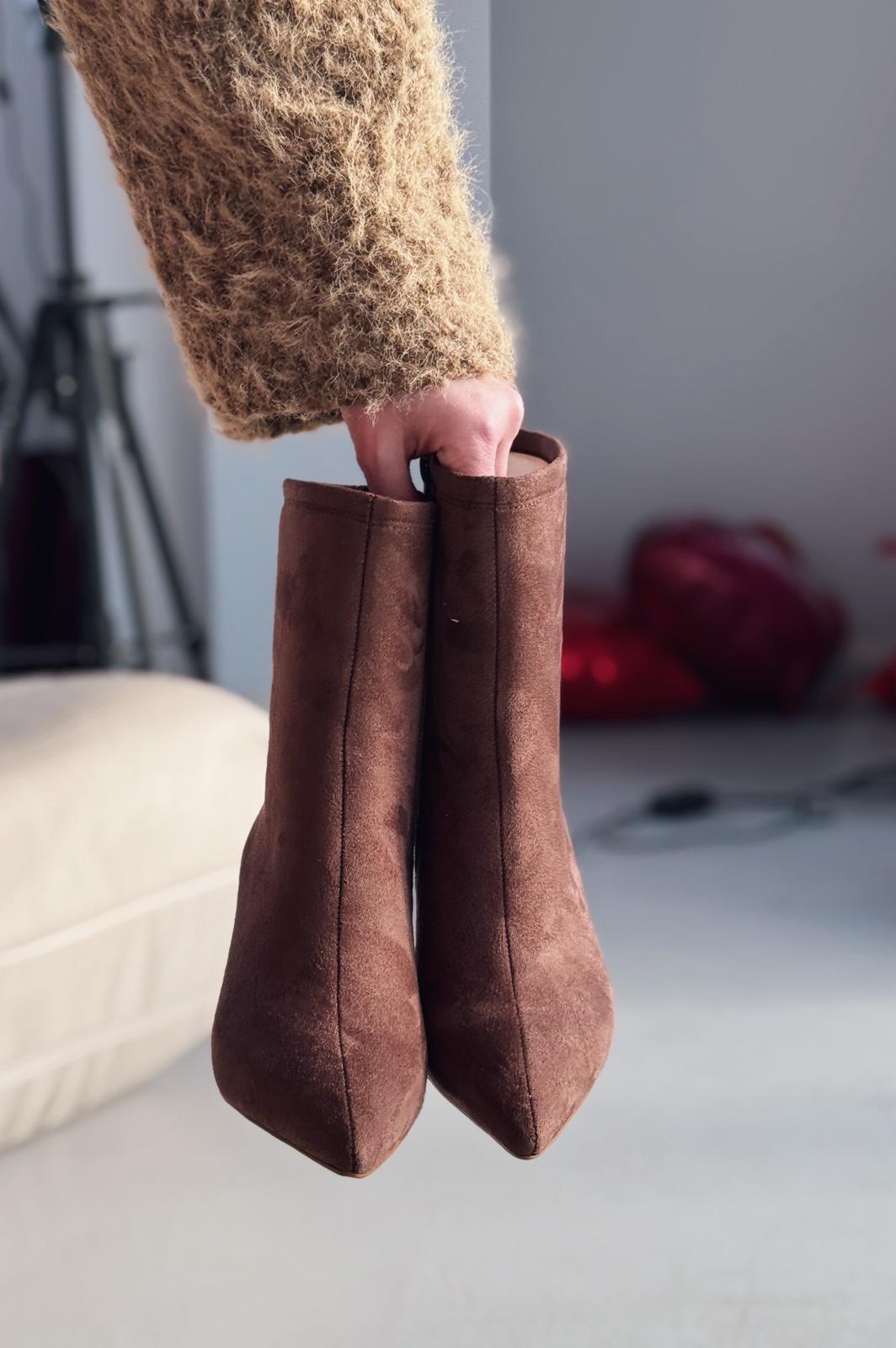 Orvex Kadın Süet İnce Topuklu Bot Acı Kahve