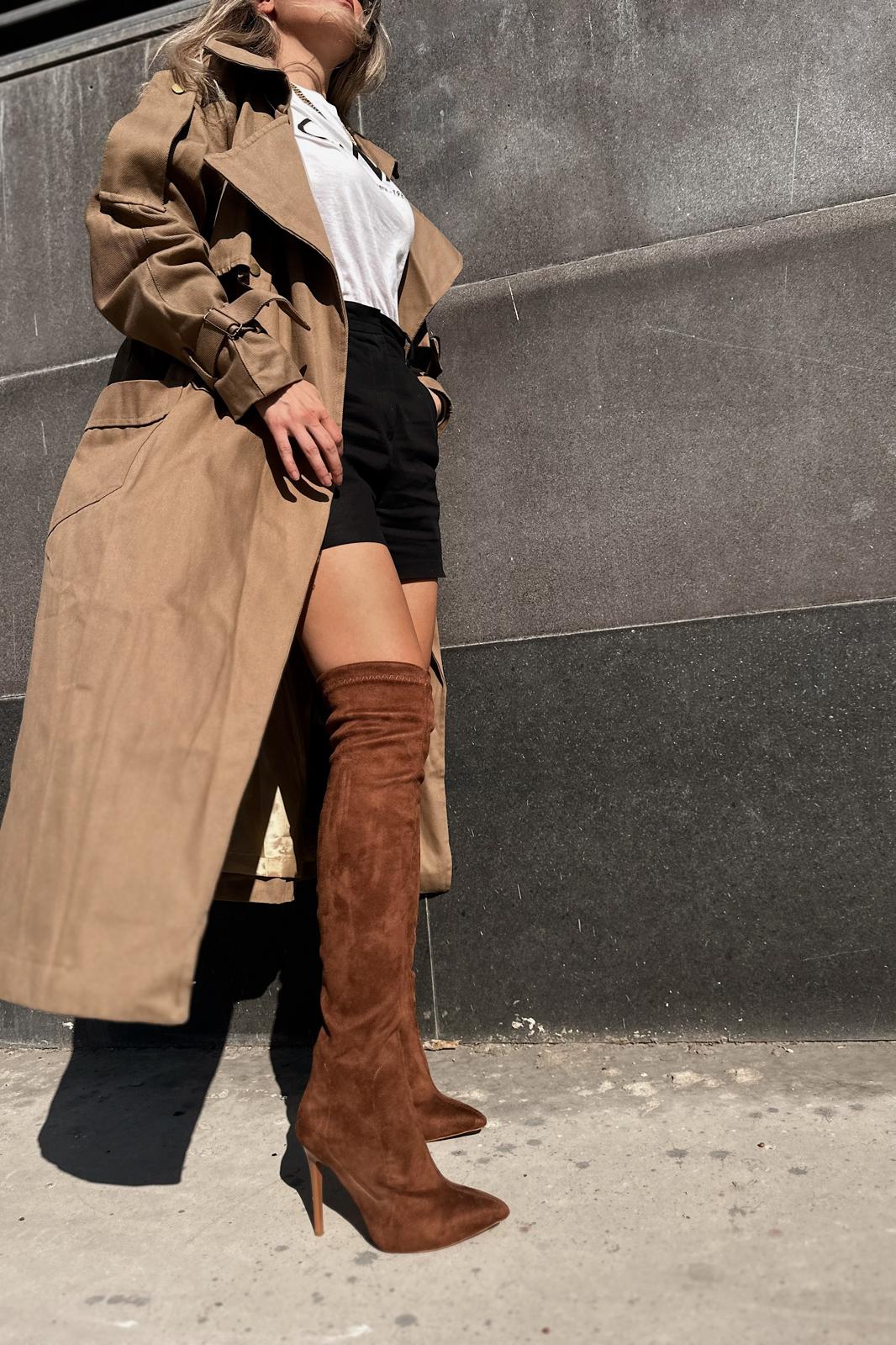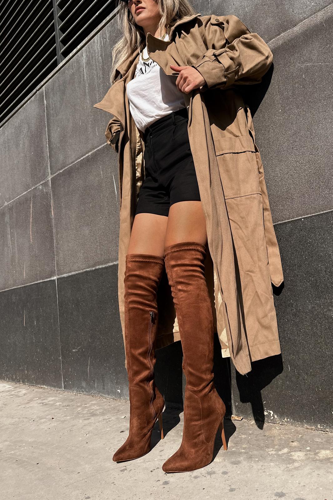 Bu kış sezonunda dizüstü ince topuklu süet çorap çizmeler, hem trendleri yakından takip eden moda tutkunlarının hem de zarif bir stil arayışında olanların favorisi haline geliyor. Bacakları tamamen saran yapısıyla vücut hatlarını vurgulayan zarif bir görünüm sağlıyor. Özellikle süet materyal, hem lüks bir dokunuş katıyor hem de soğuk havalarda sıcaklık sağlıyor. İnce topuk detayı ise bu modelin feminen ve zarif duruşunu pekiştiriyor.