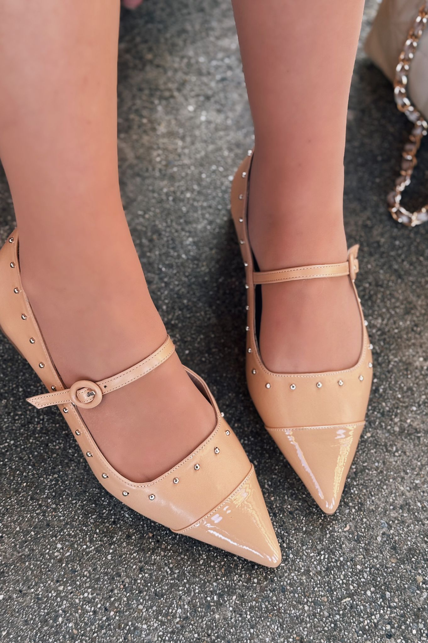 Panilo Mat Deri Zımba Detaylı Nude Kadın Babet