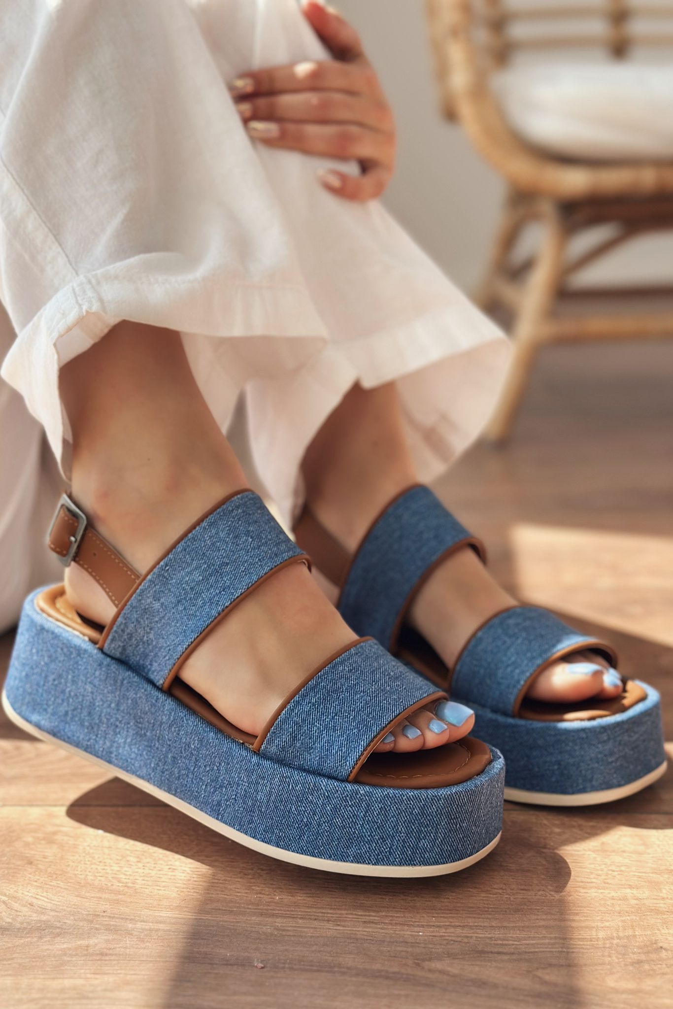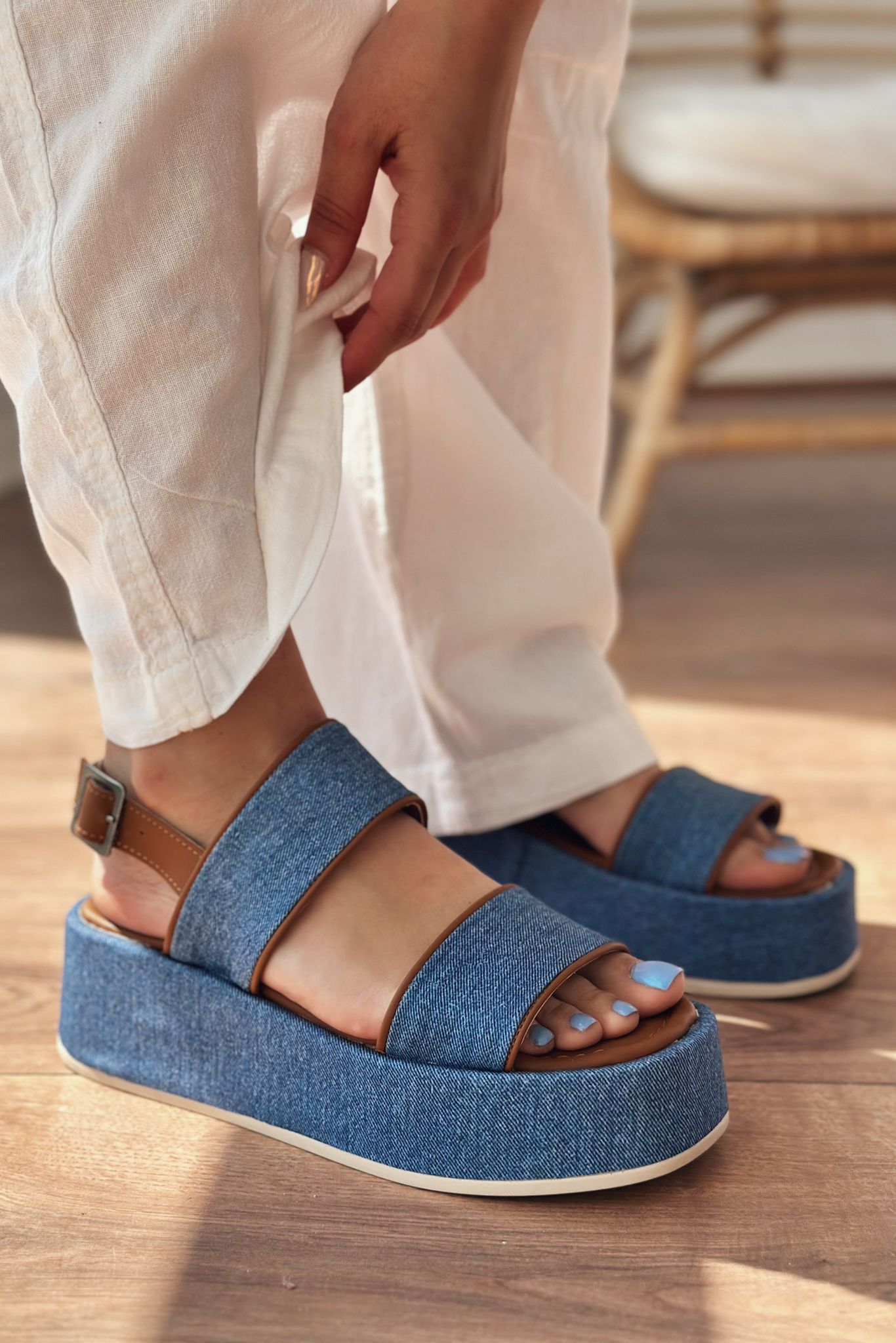 Pawens Jean Kalın Taban Kadın Sandalet Mavi