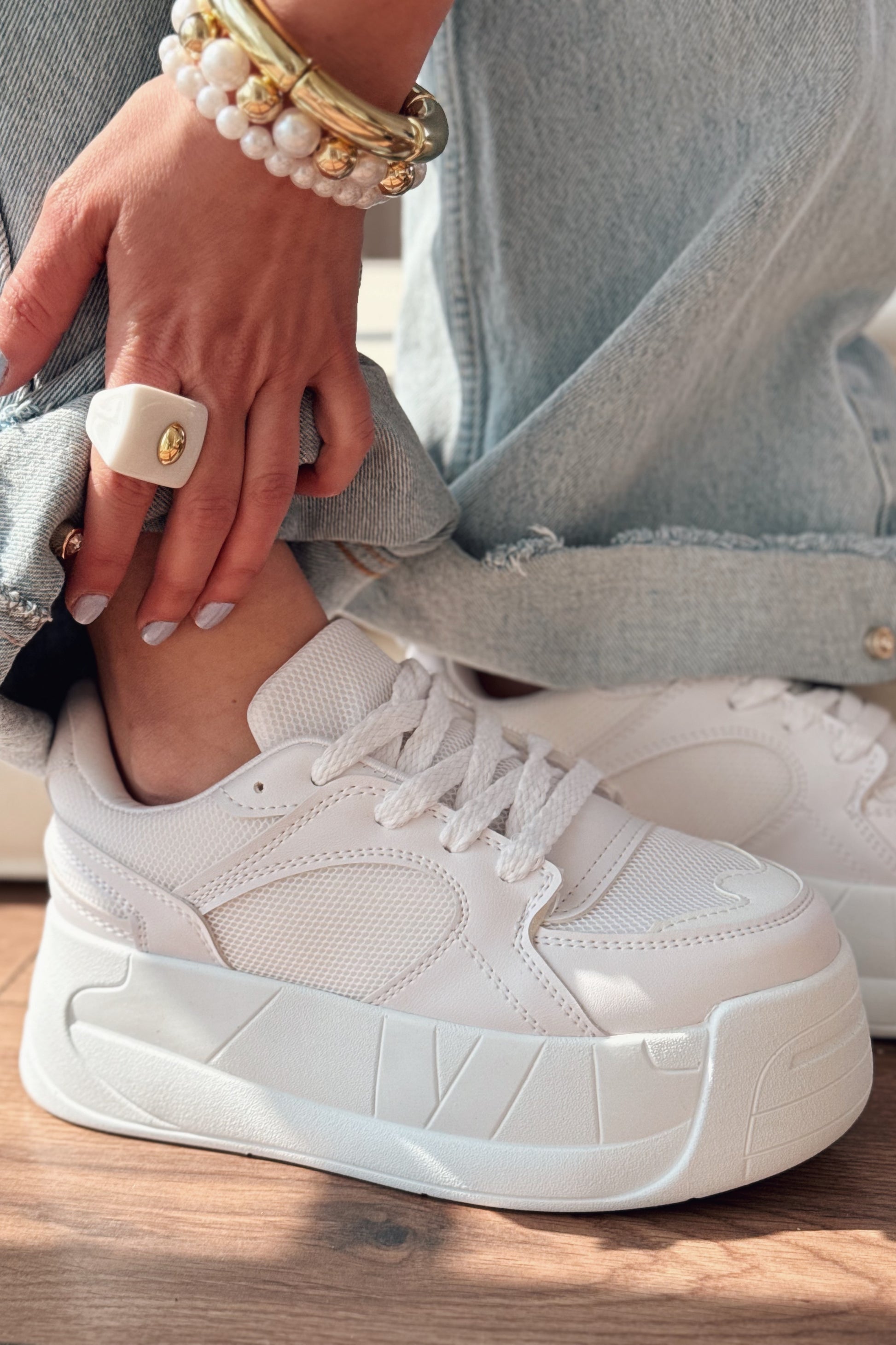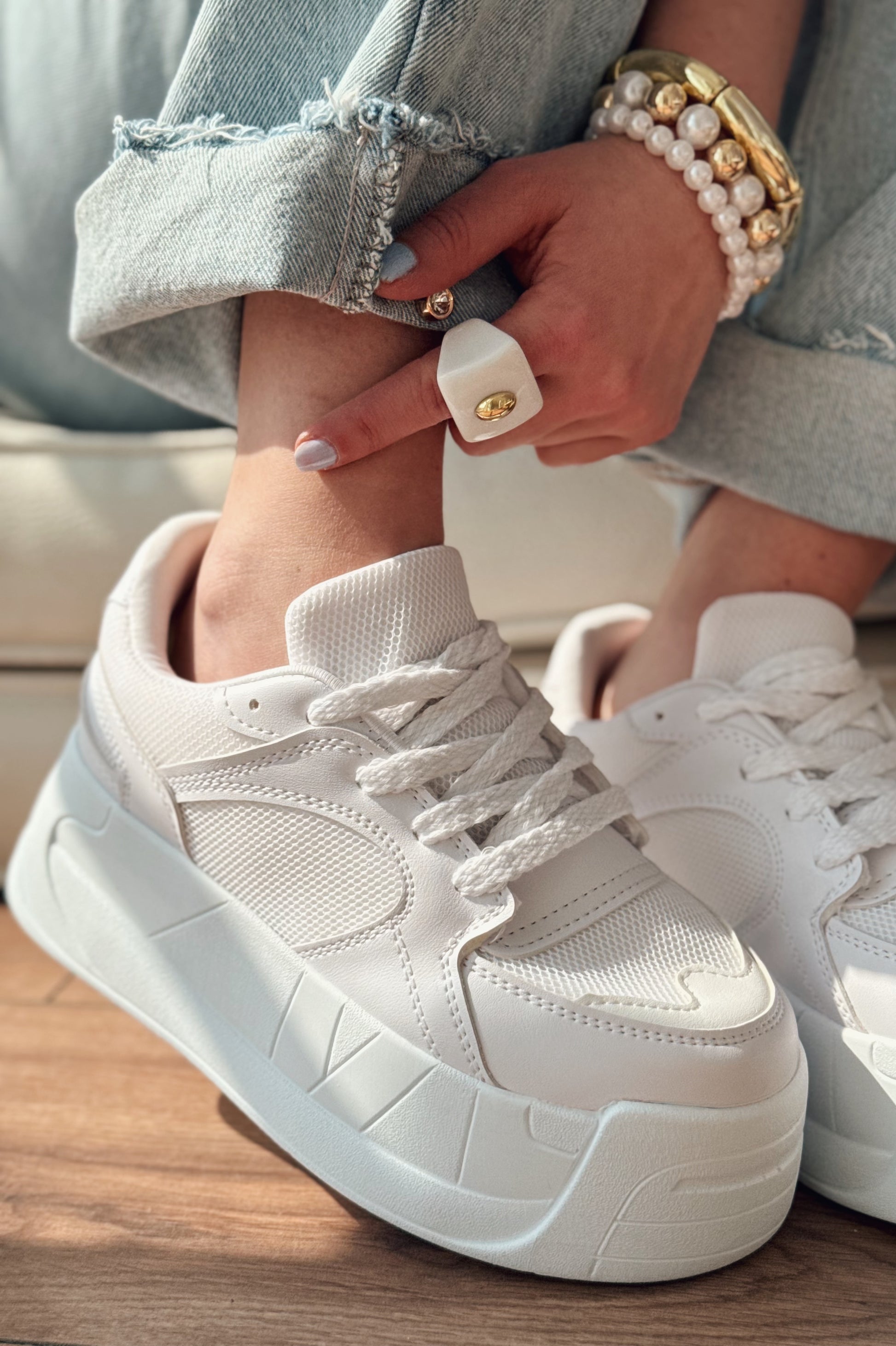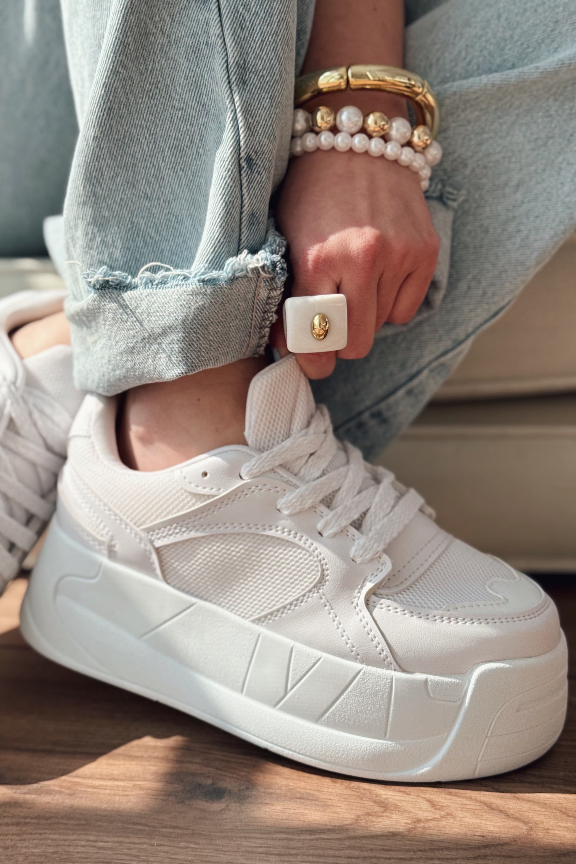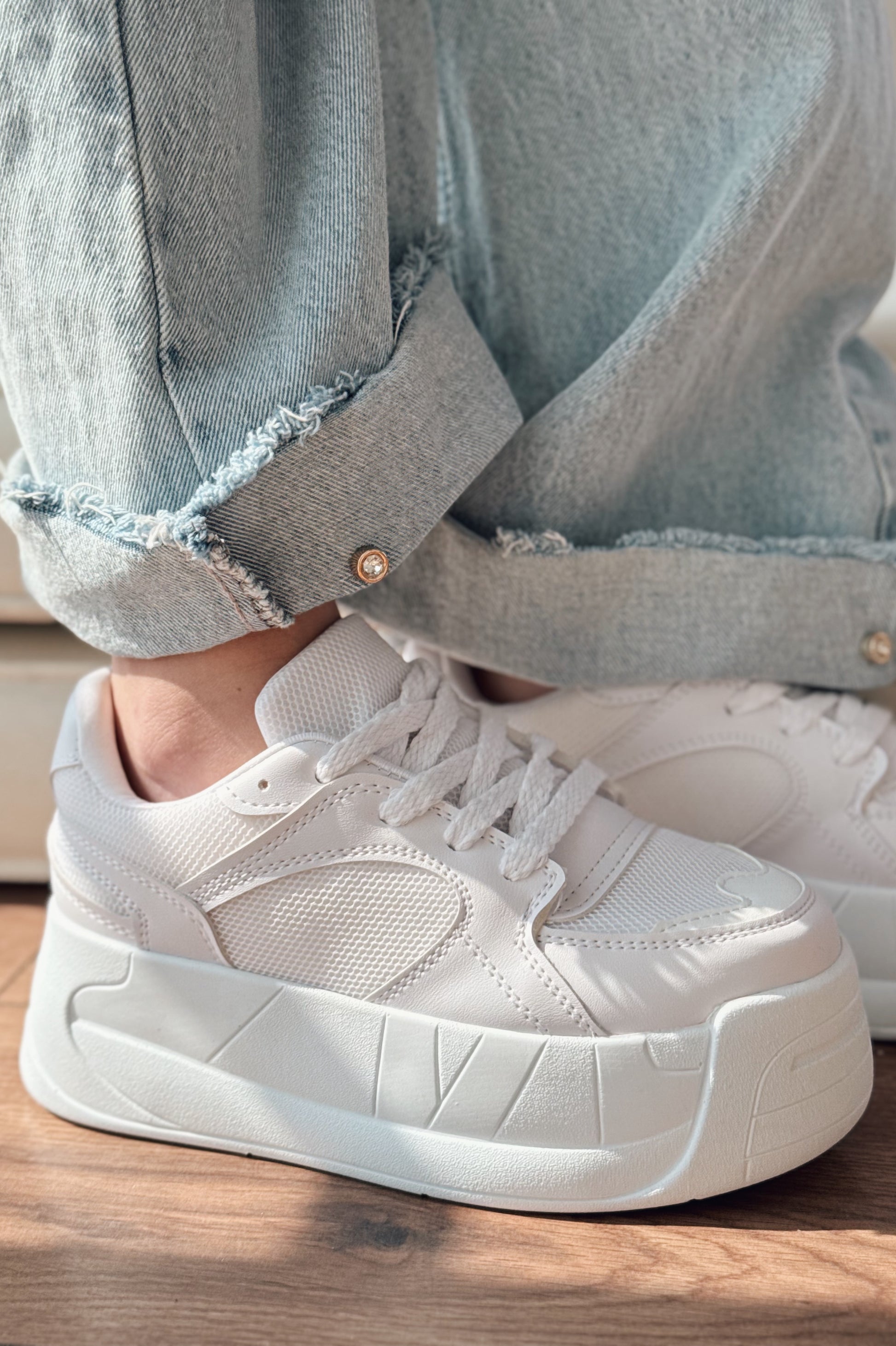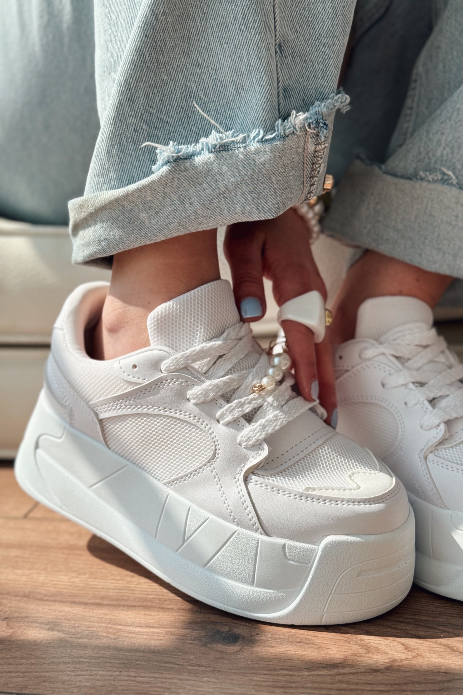 Ravela Beyaz Fileli Yüksek Taban Kadın Spor Ayakkabı