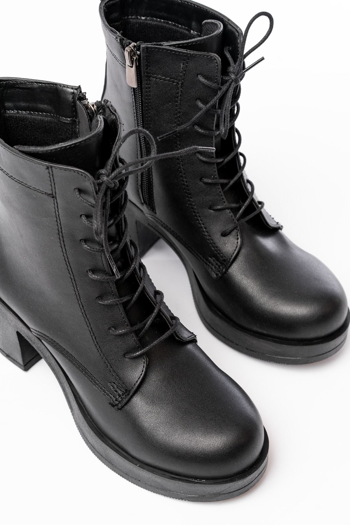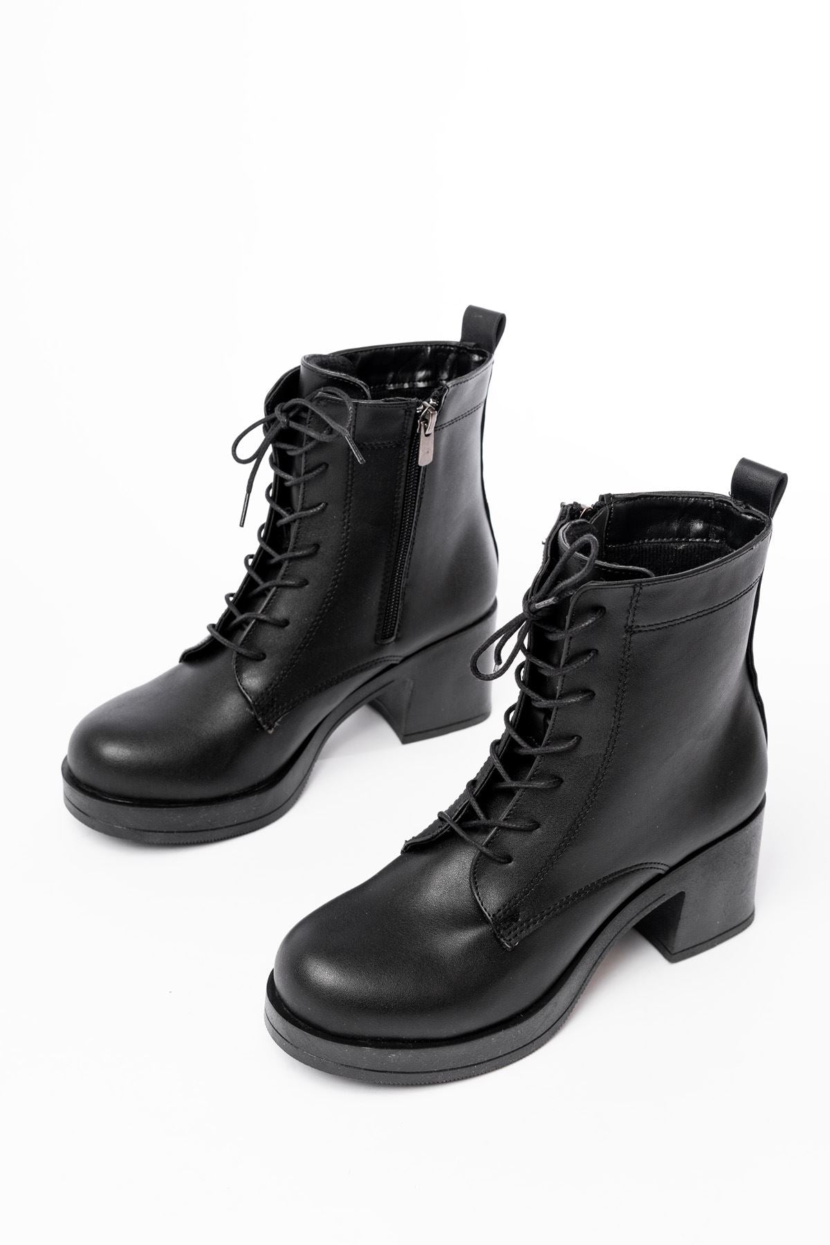 Rilsa Siyah Bağcıklı Fermuarlı Kalın Topuklu Günlük Kadın Bot