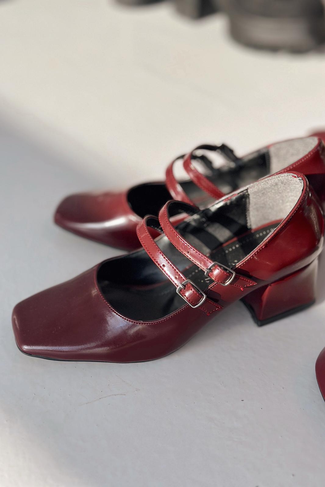 Rintas Rugan Mary Jane Kadın Topuklu Ayakkabı Bordo