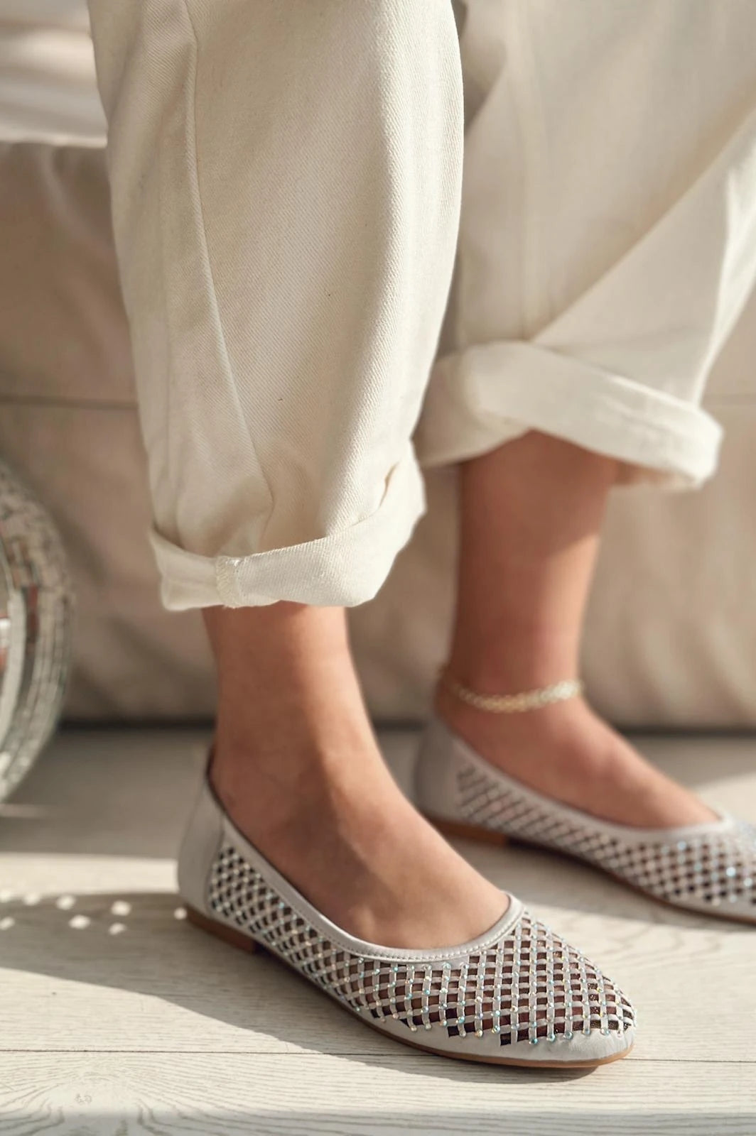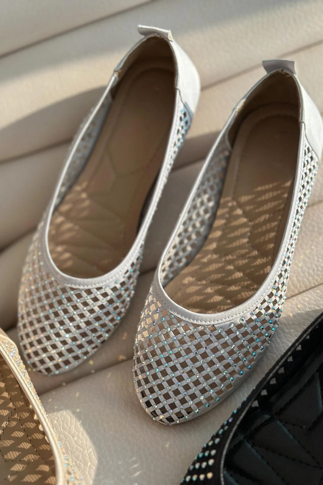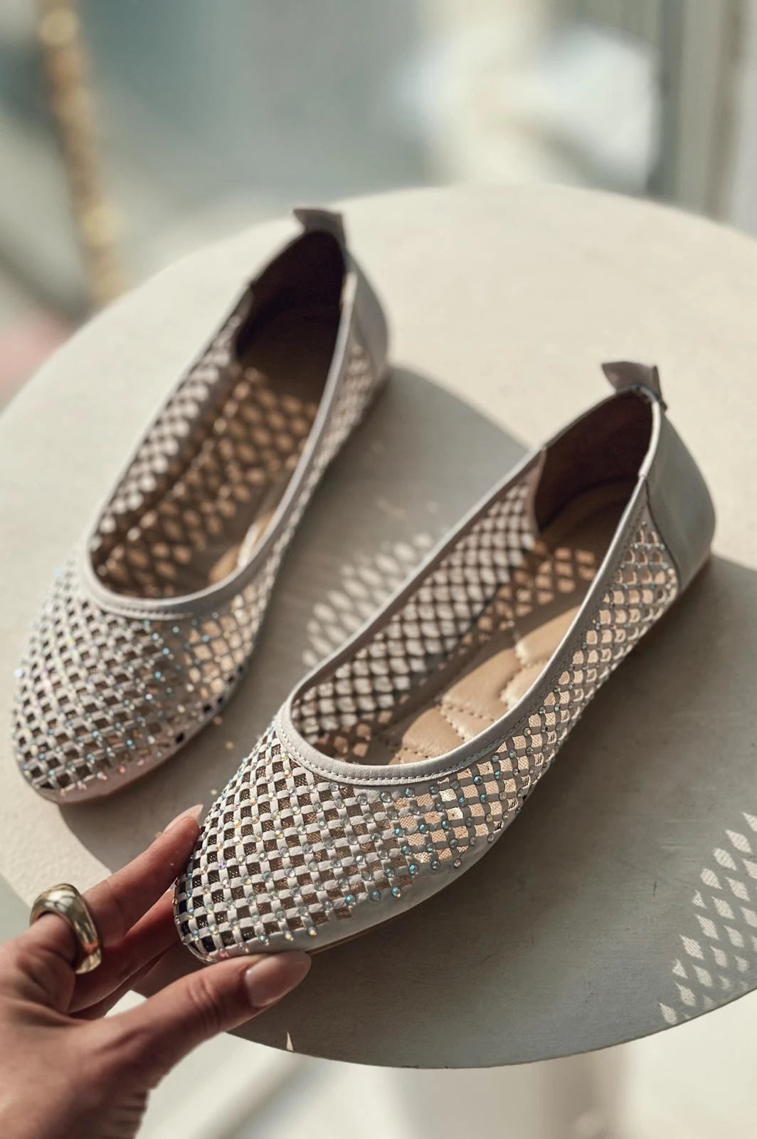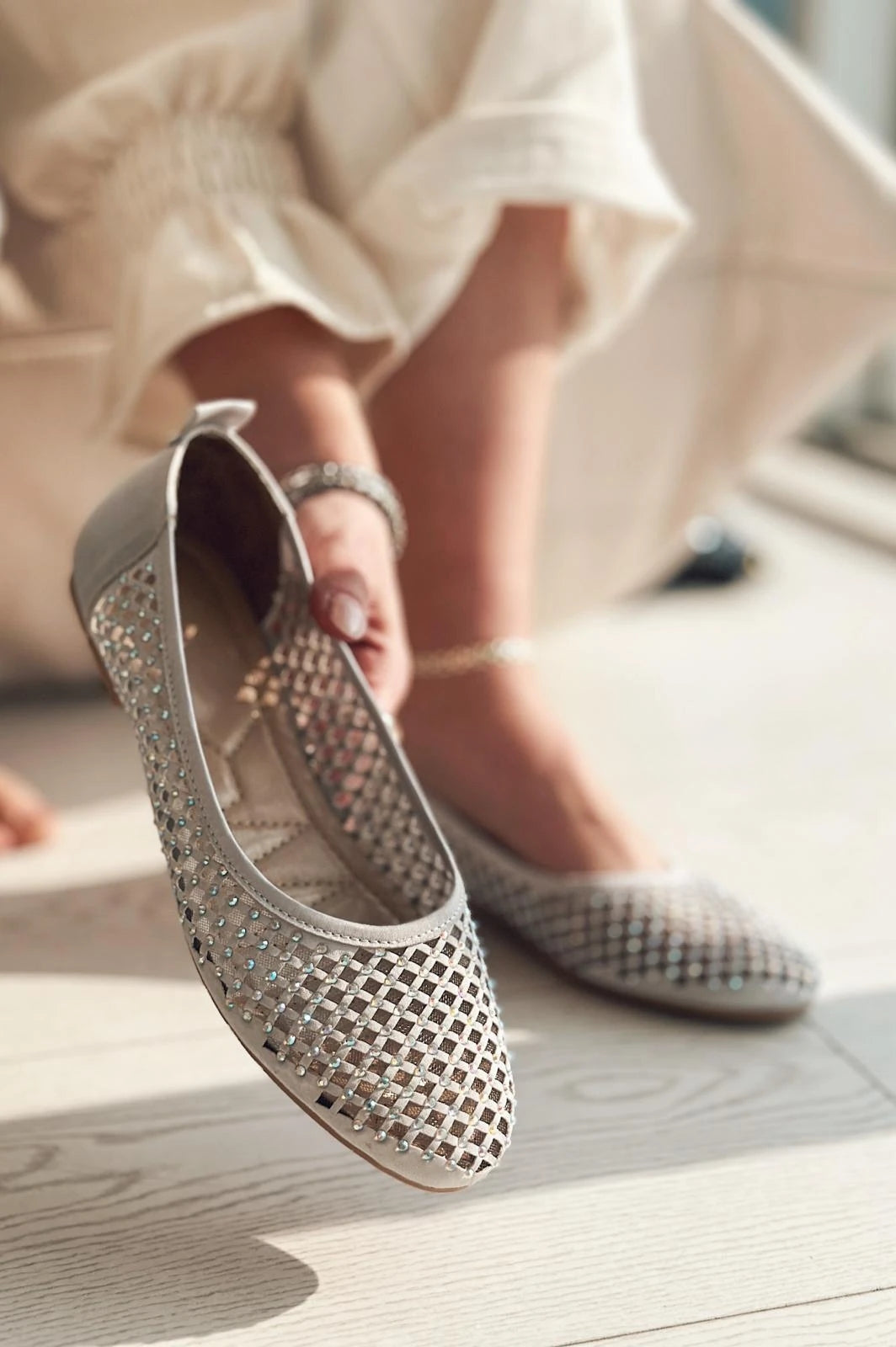 Ronetta Saten Taş Detaylı Babet Gümüş