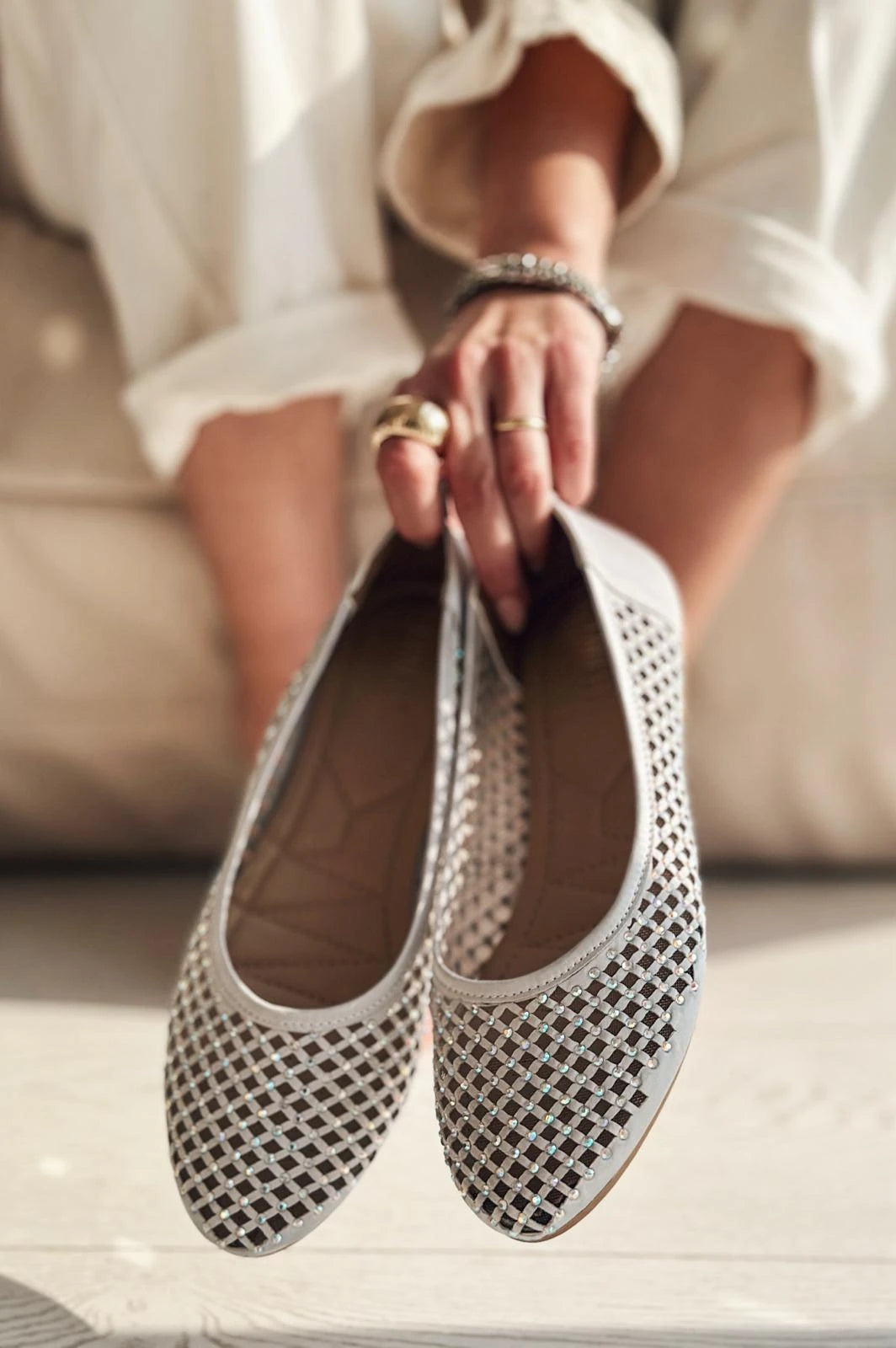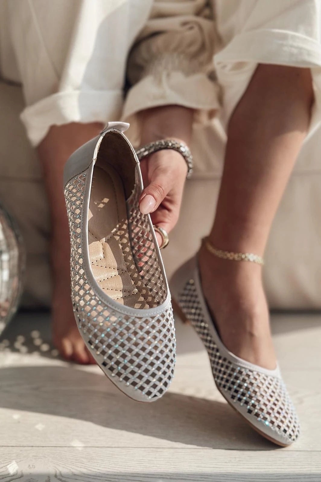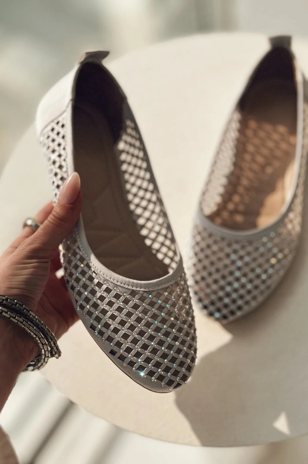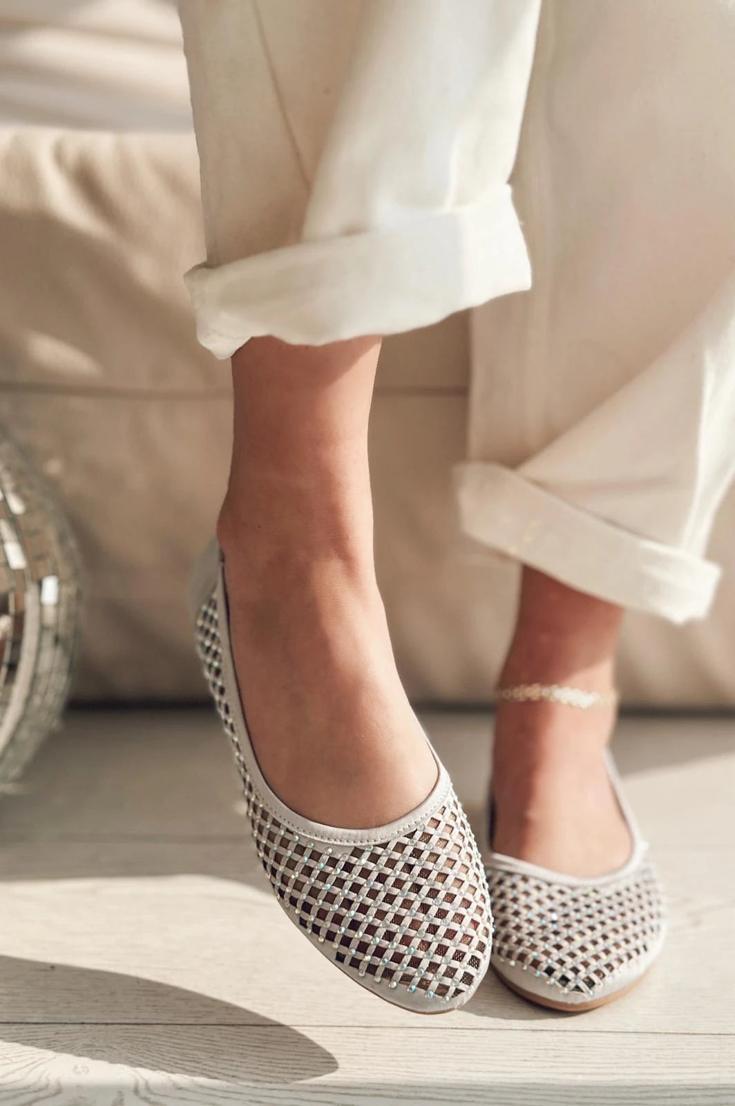 Ronetta Saten Taş Detaylı Babet Gümüş