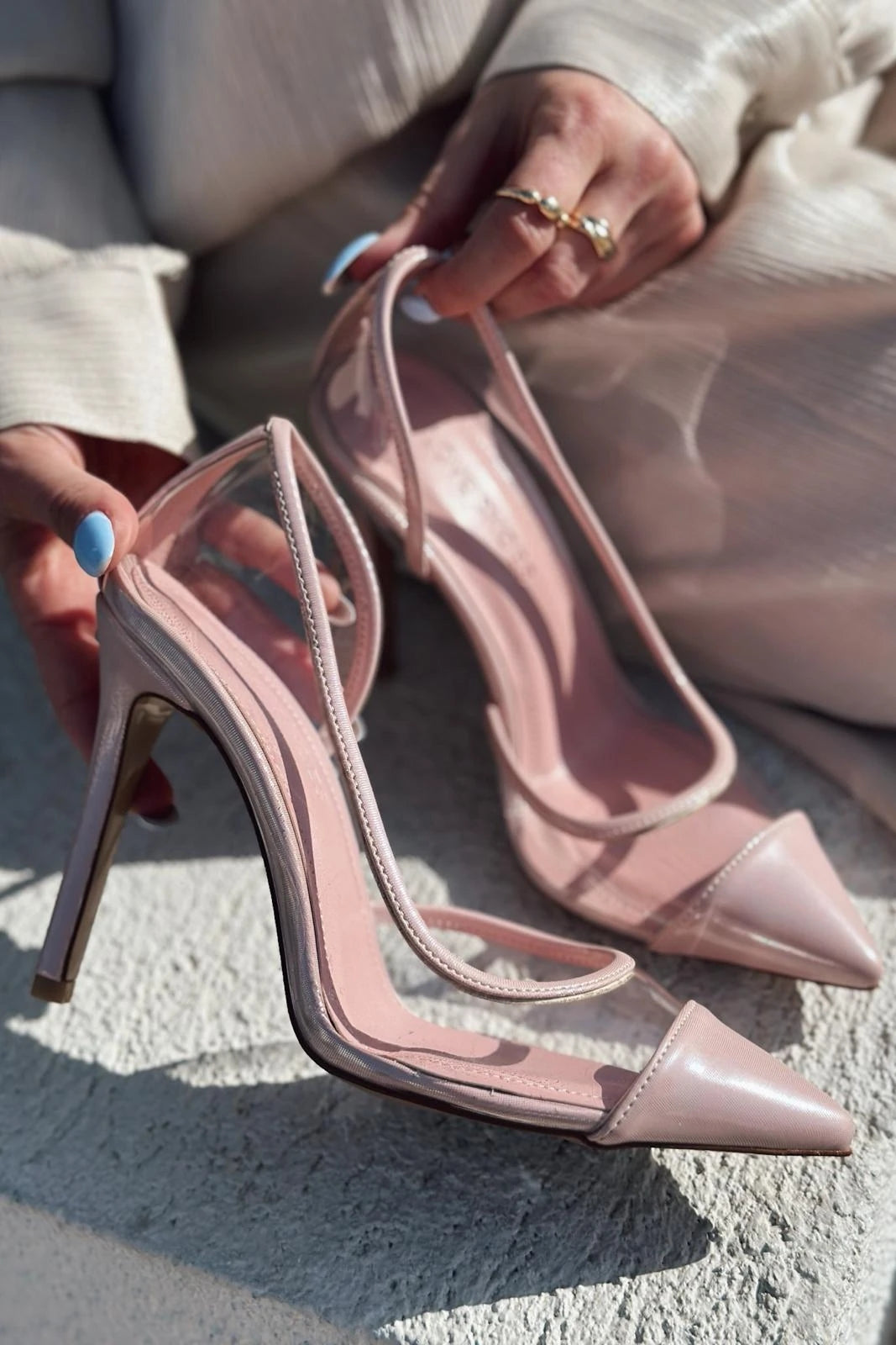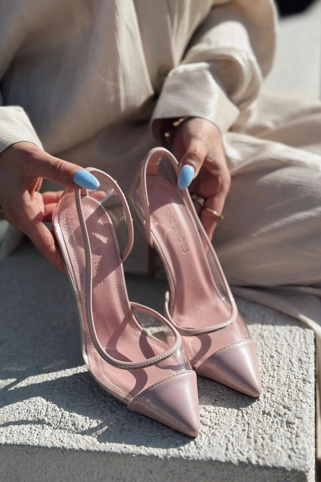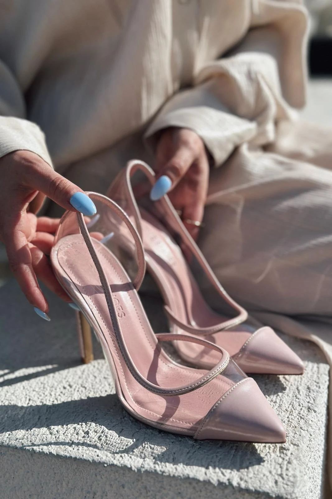 Ronse Mat Deri Şeffaf Stiletto Pudra