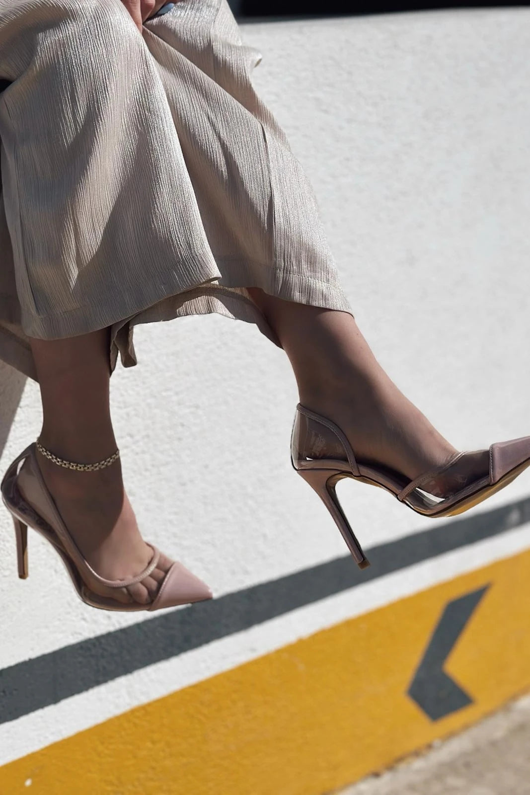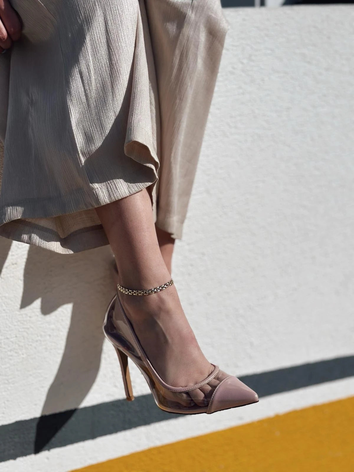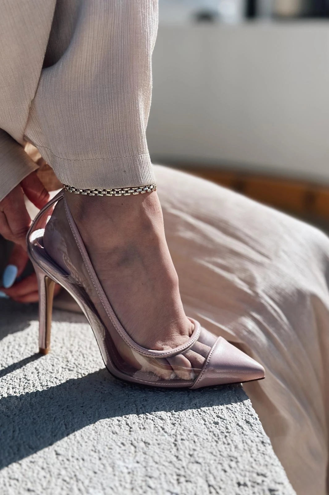 Ronse Mat Deri Şeffaf Stiletto Pudra