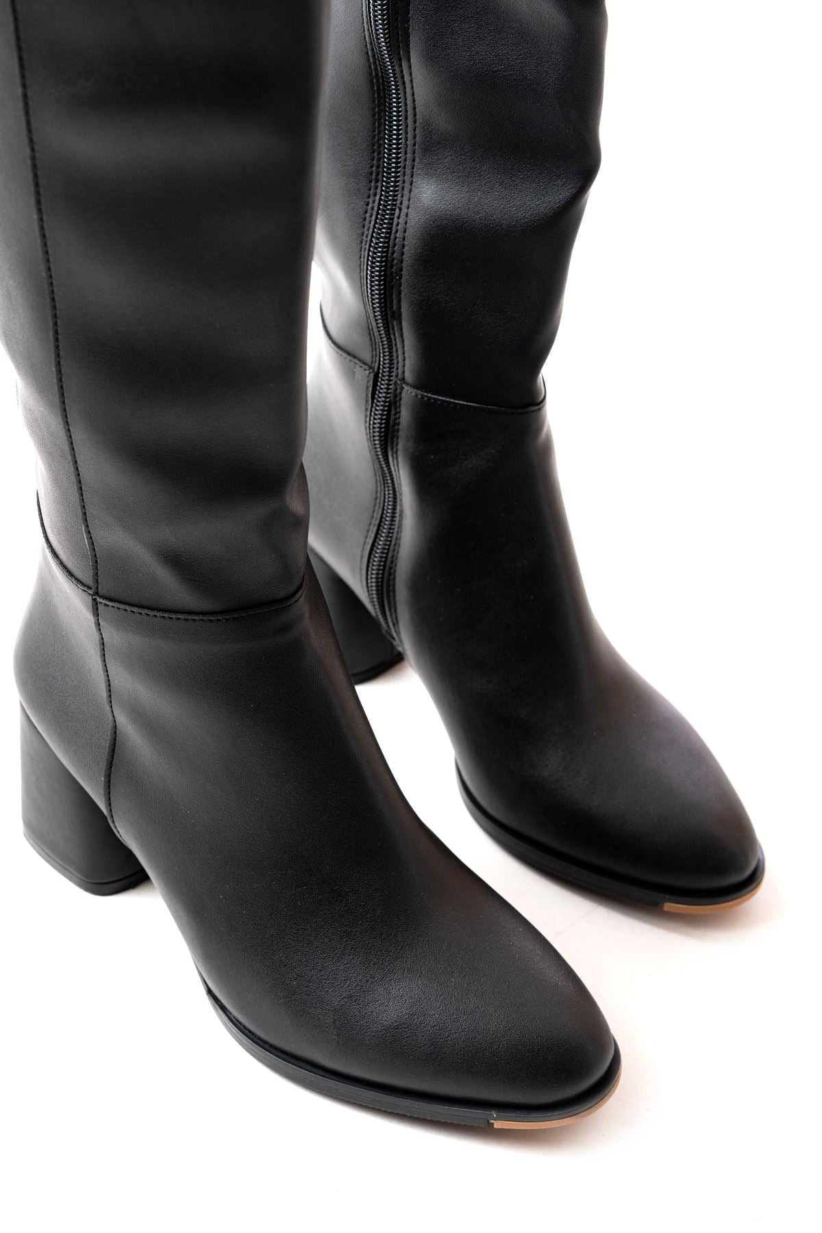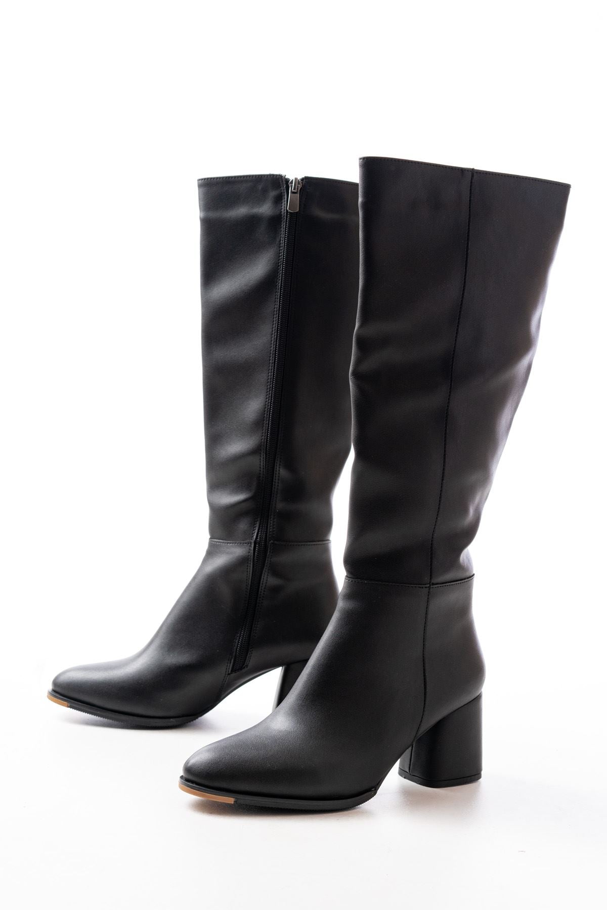 Taferso Siyah Topuklu Fermuarlı Günlük Kadın Çizme