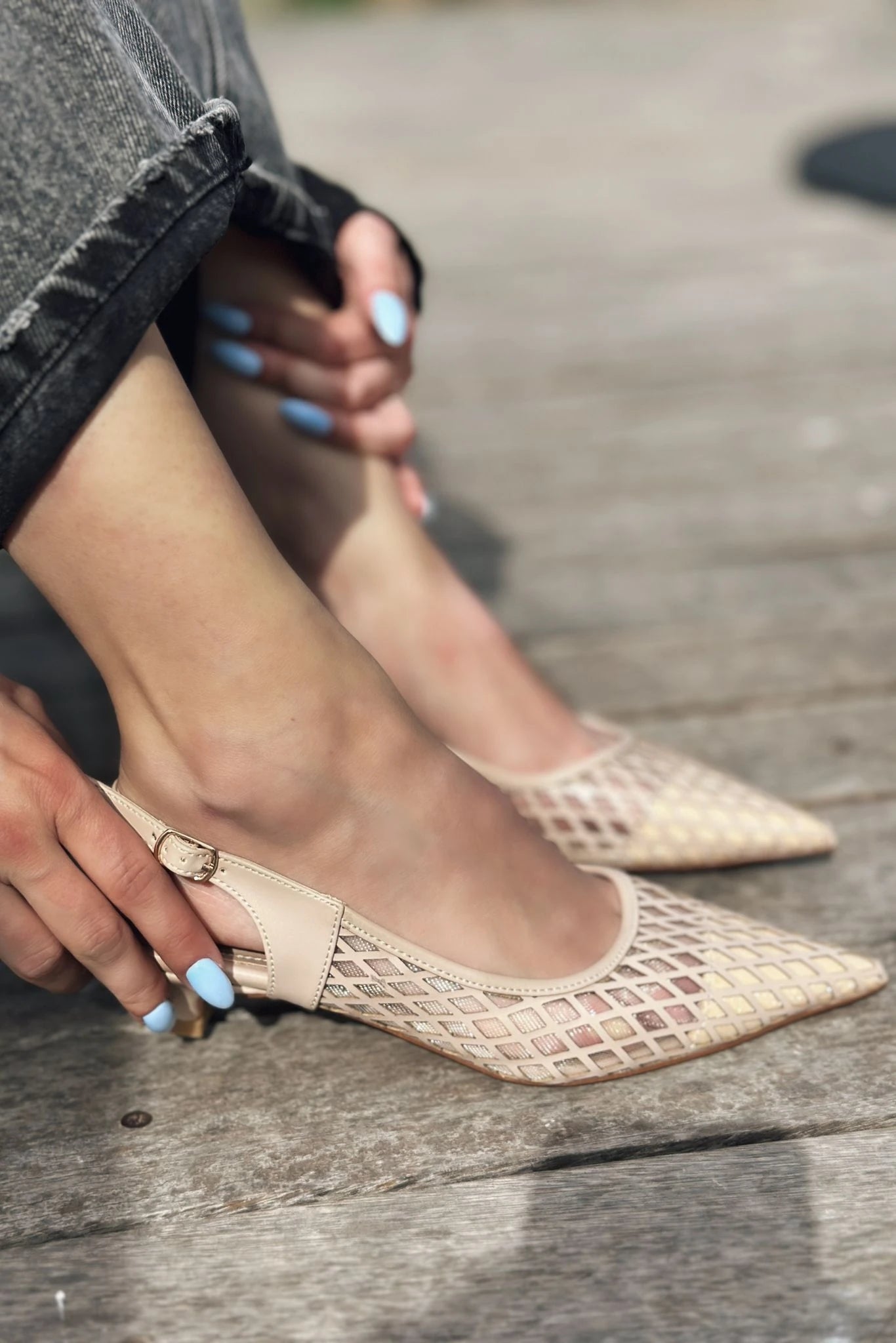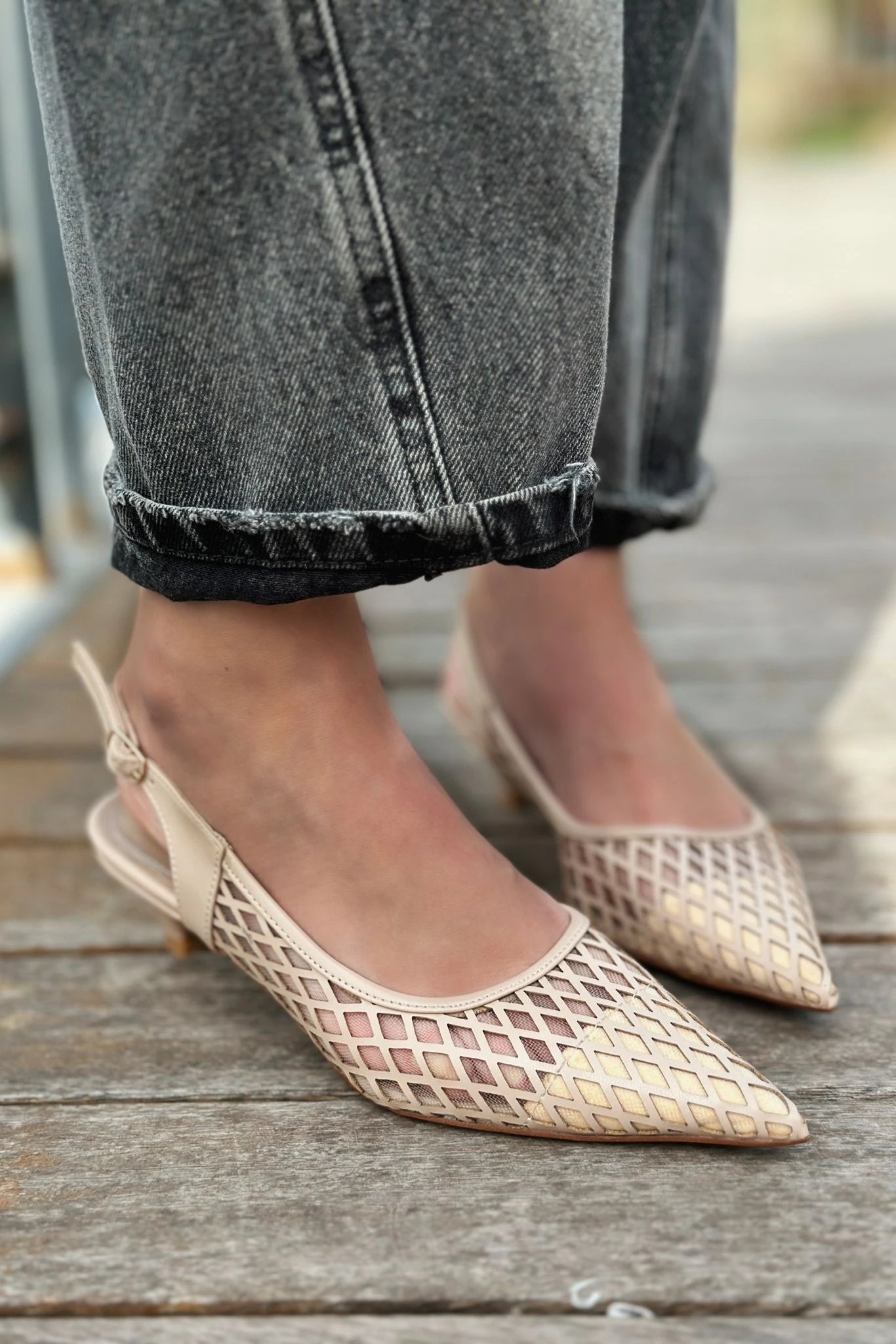 Talin Mat Deri File Detaylı Kısa Topuklu Stiletto Nude