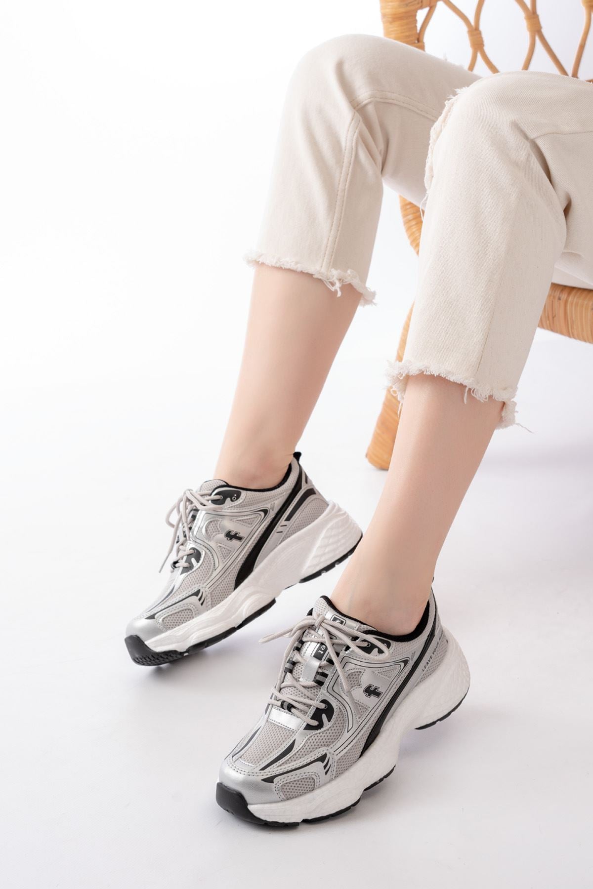 Tavelis Gri Bağcıklı Kadın Spor Ayakkabı