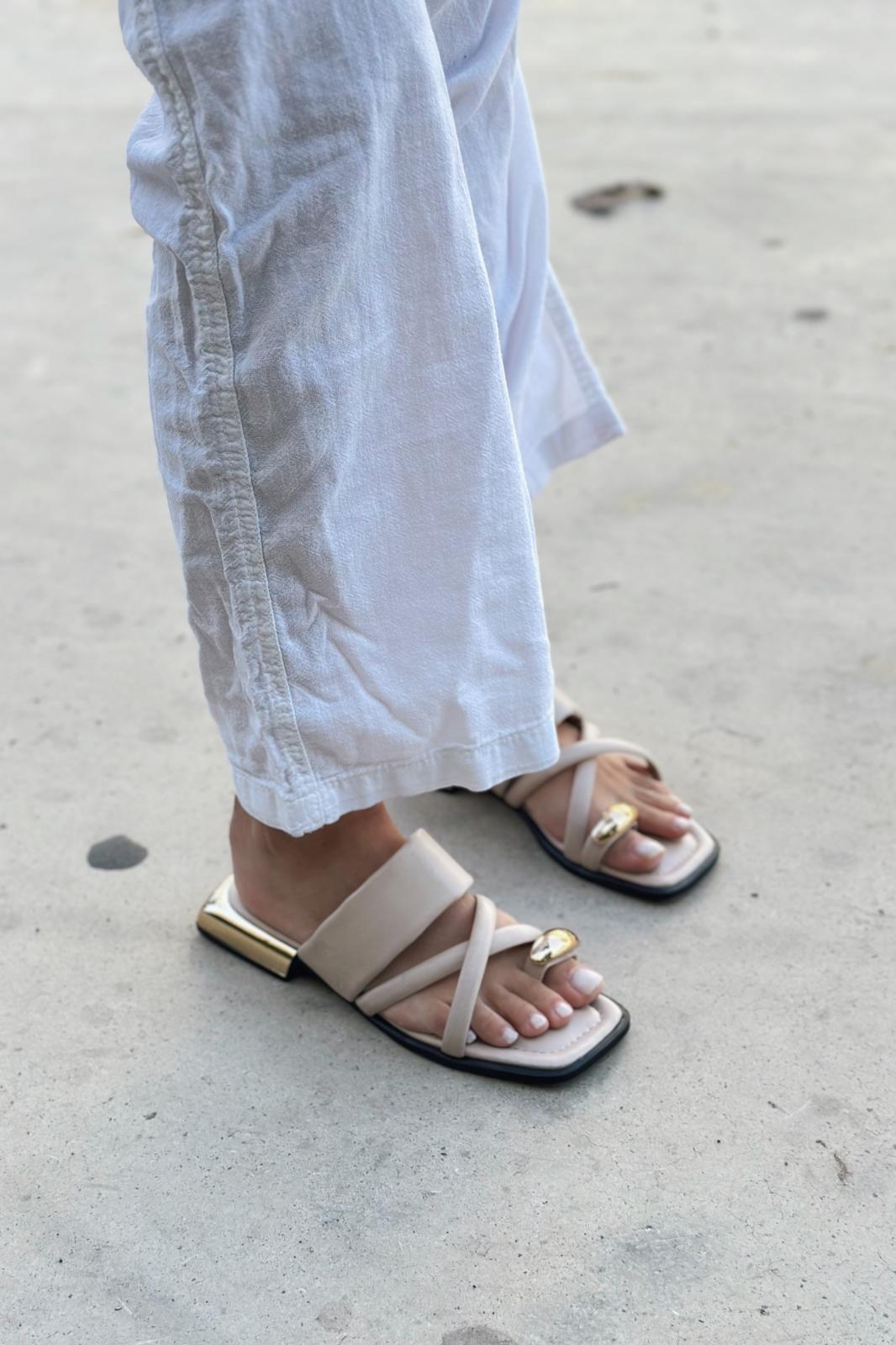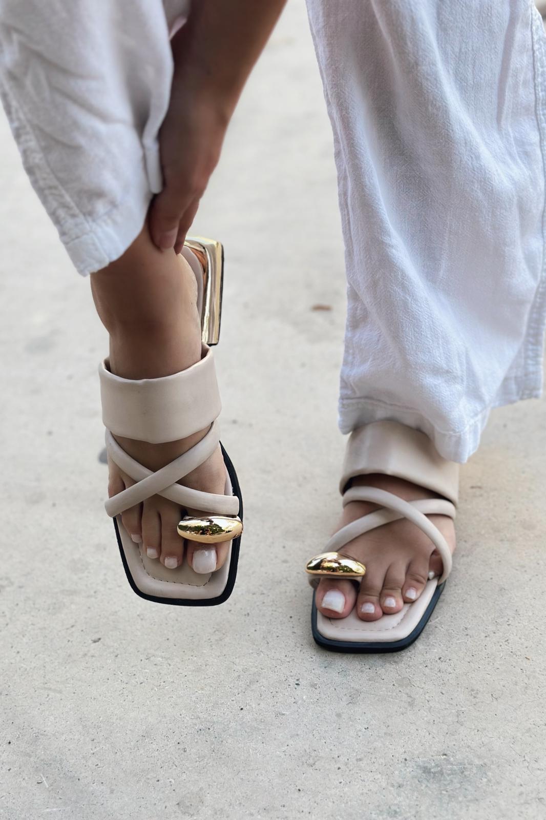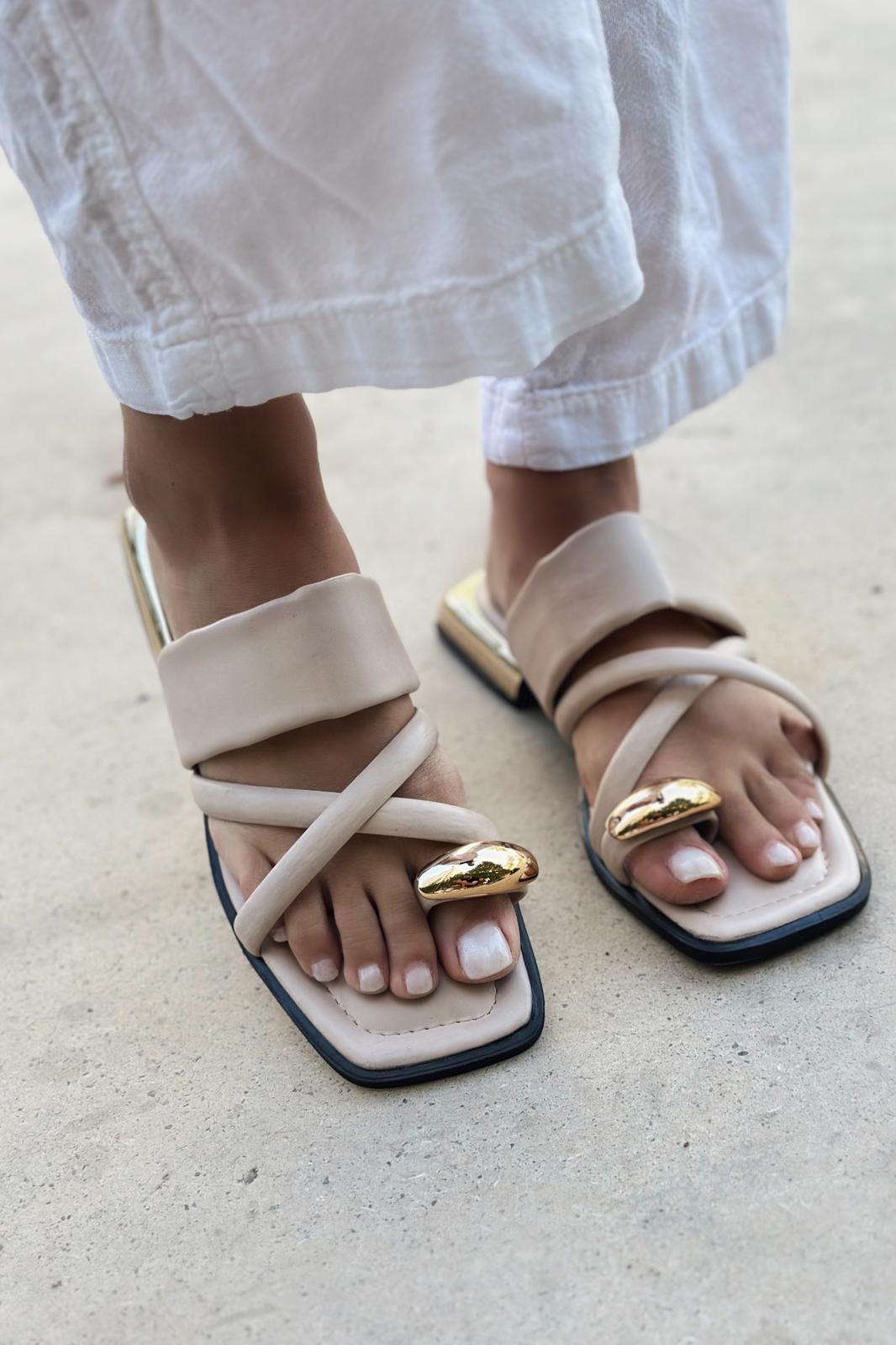 Trons Mat Deri Toka Detaylı Kadın Terlik Bej