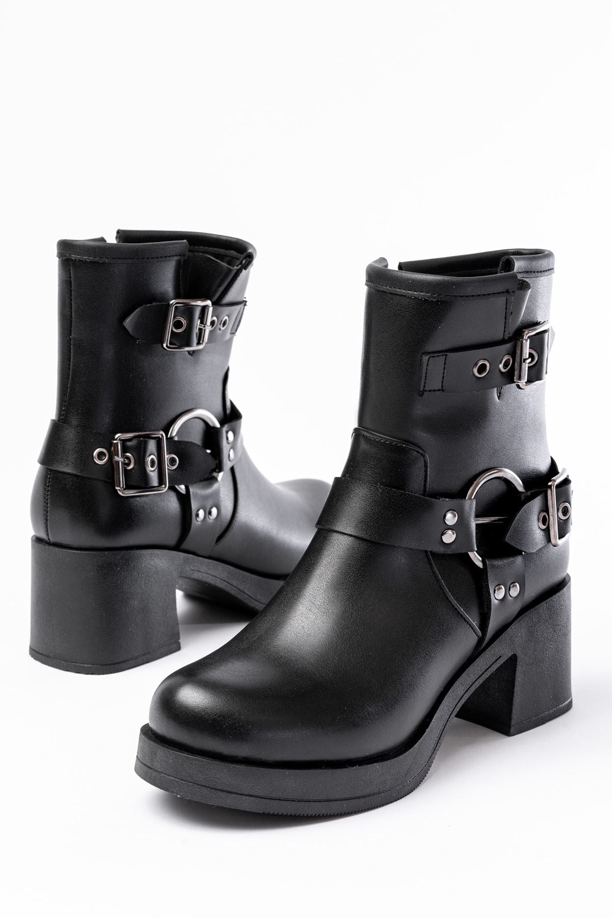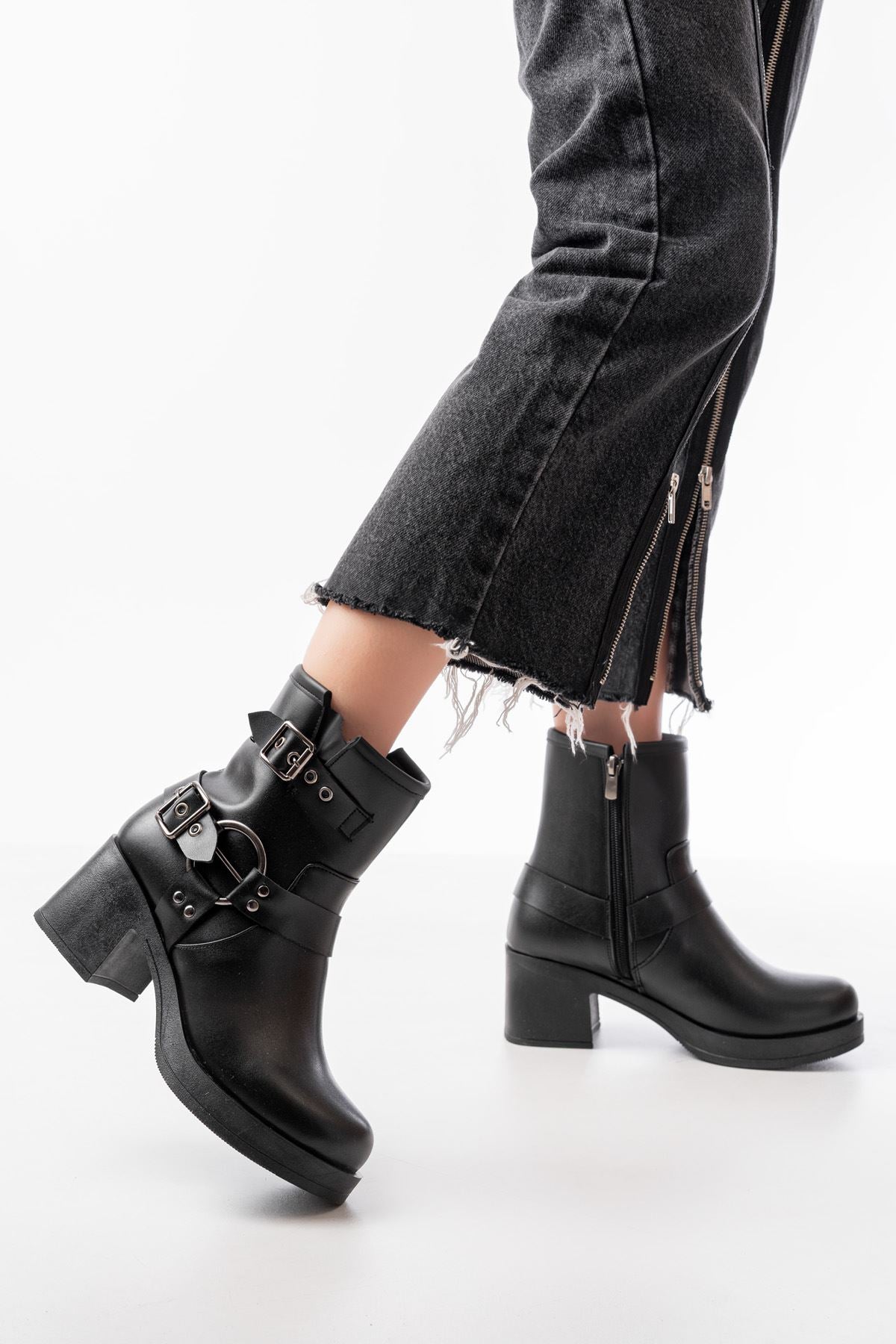 Vivaro Siyah Toka Aksesuarlı Fermuarlı Topuklu Günlük Kadın Bot