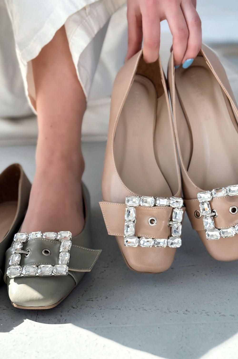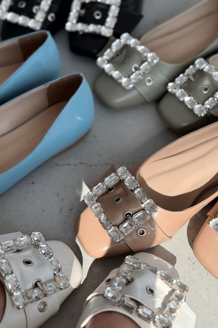 Woned Mat Deri Nude Taş Detaylı Kadın Babet