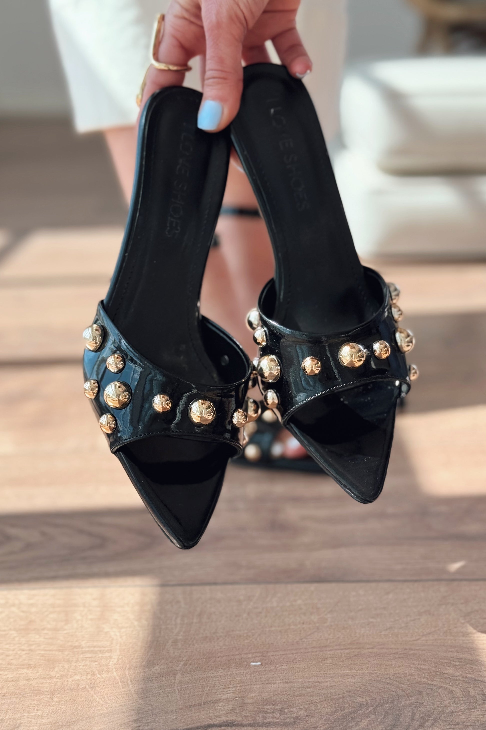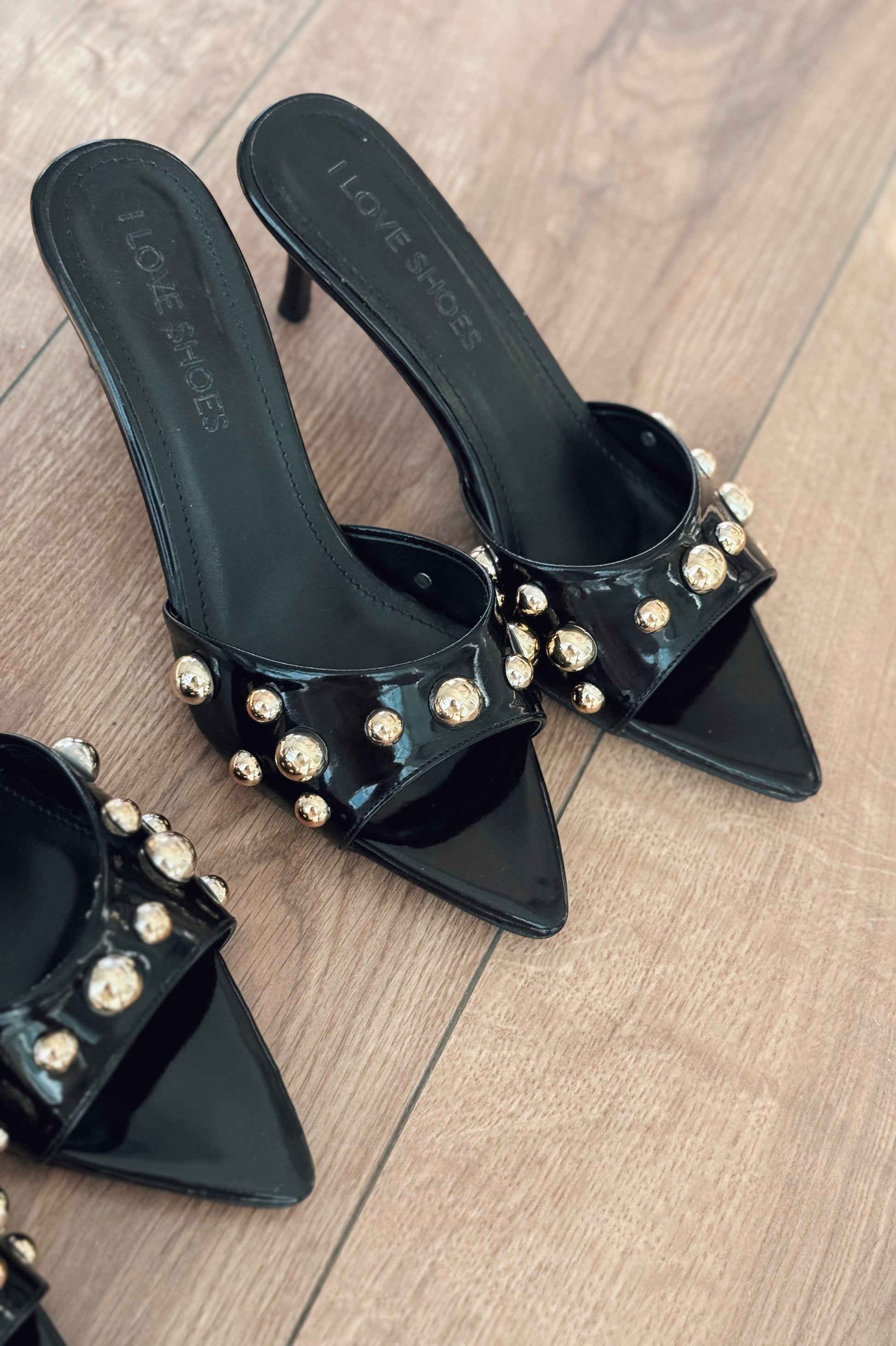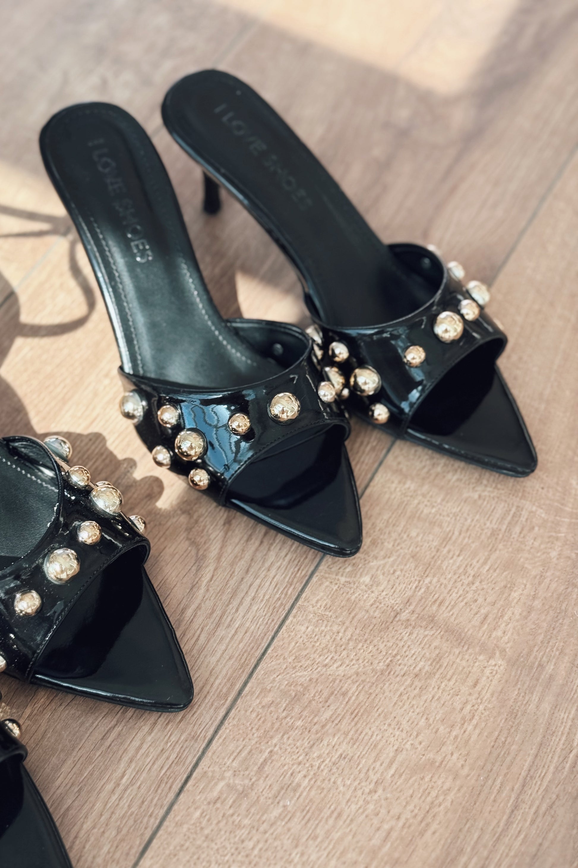 Yonspe Rugan Trok Detaylı İnce Topuklu Terlik Siyah
