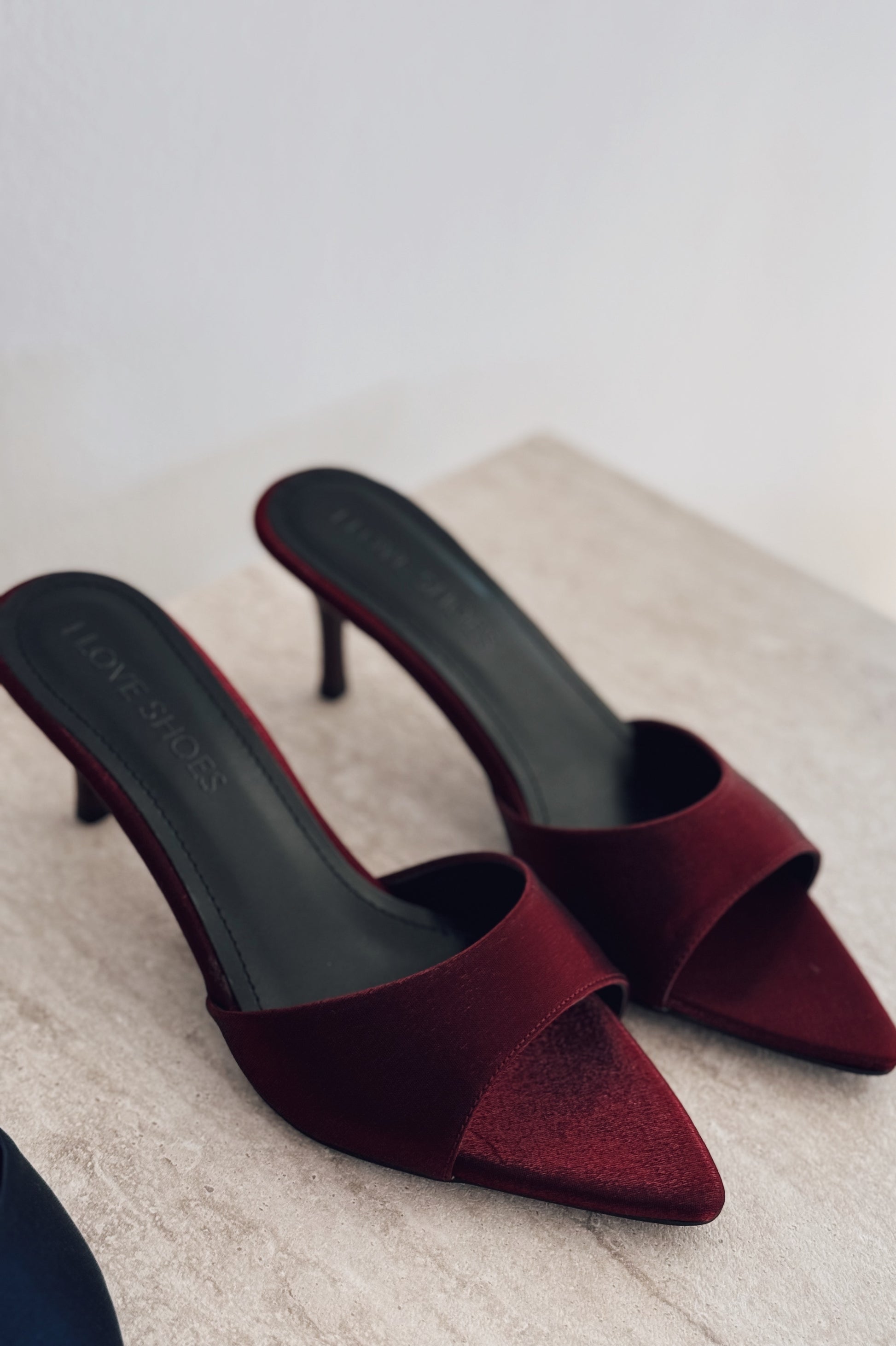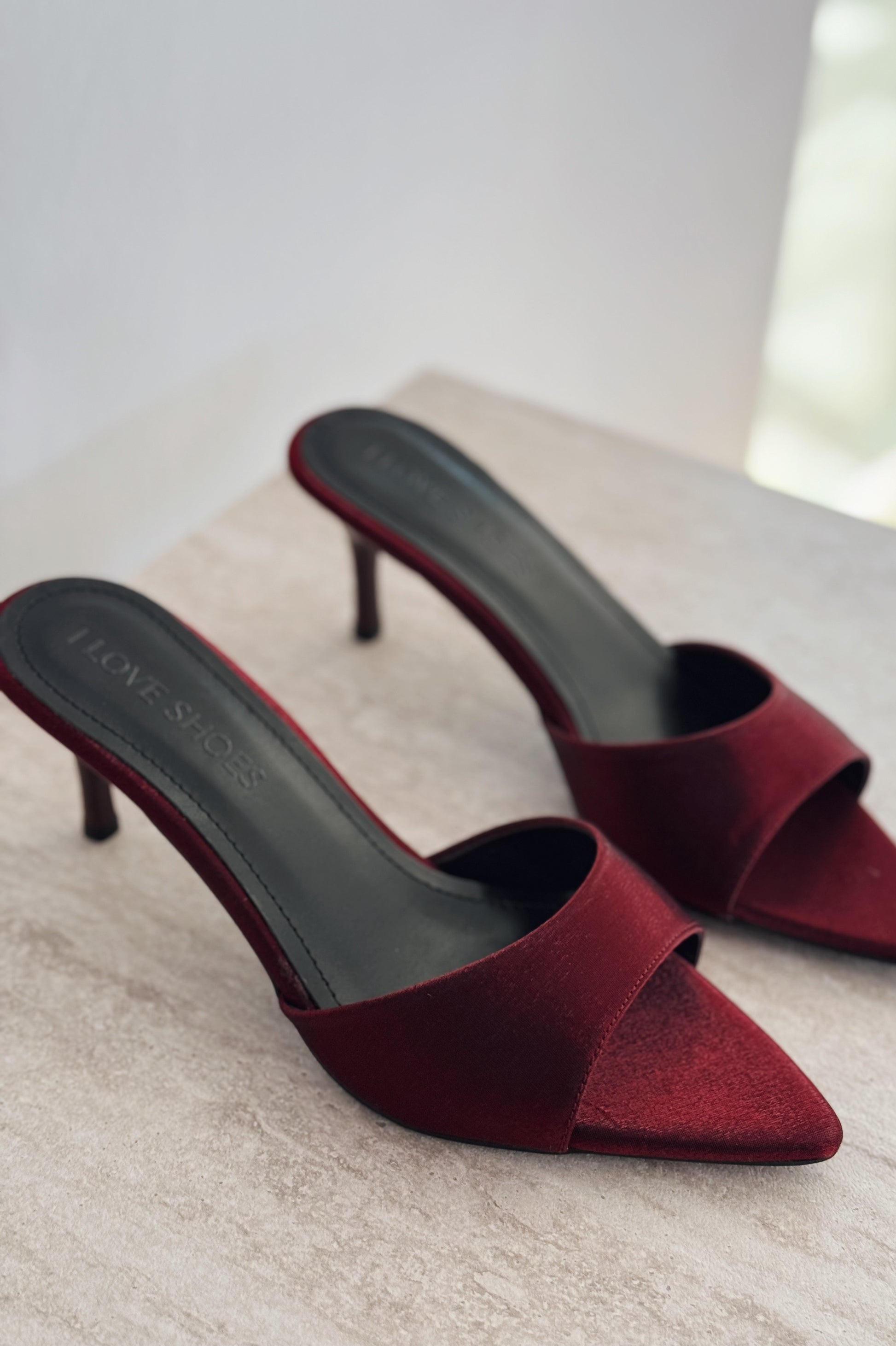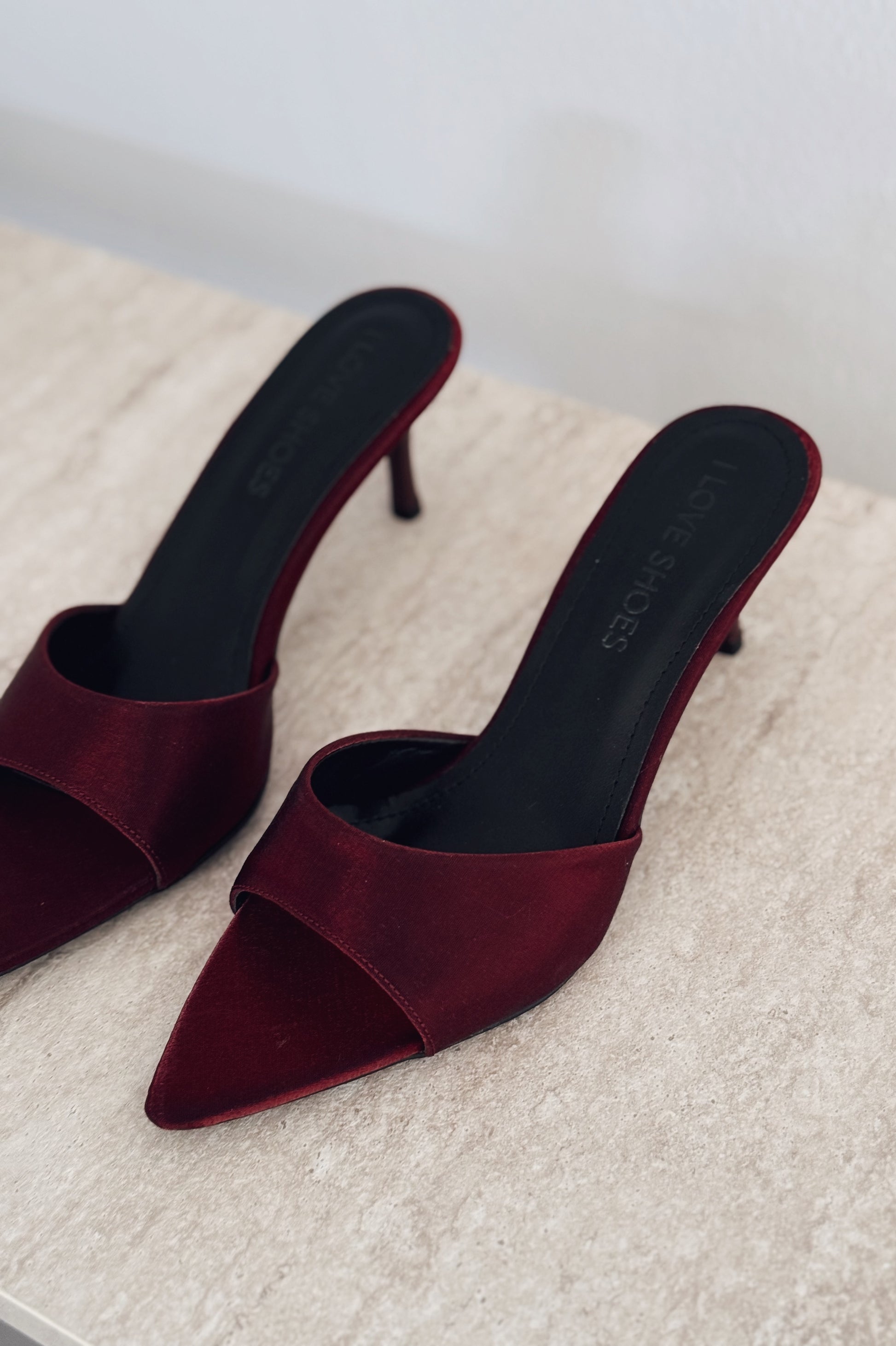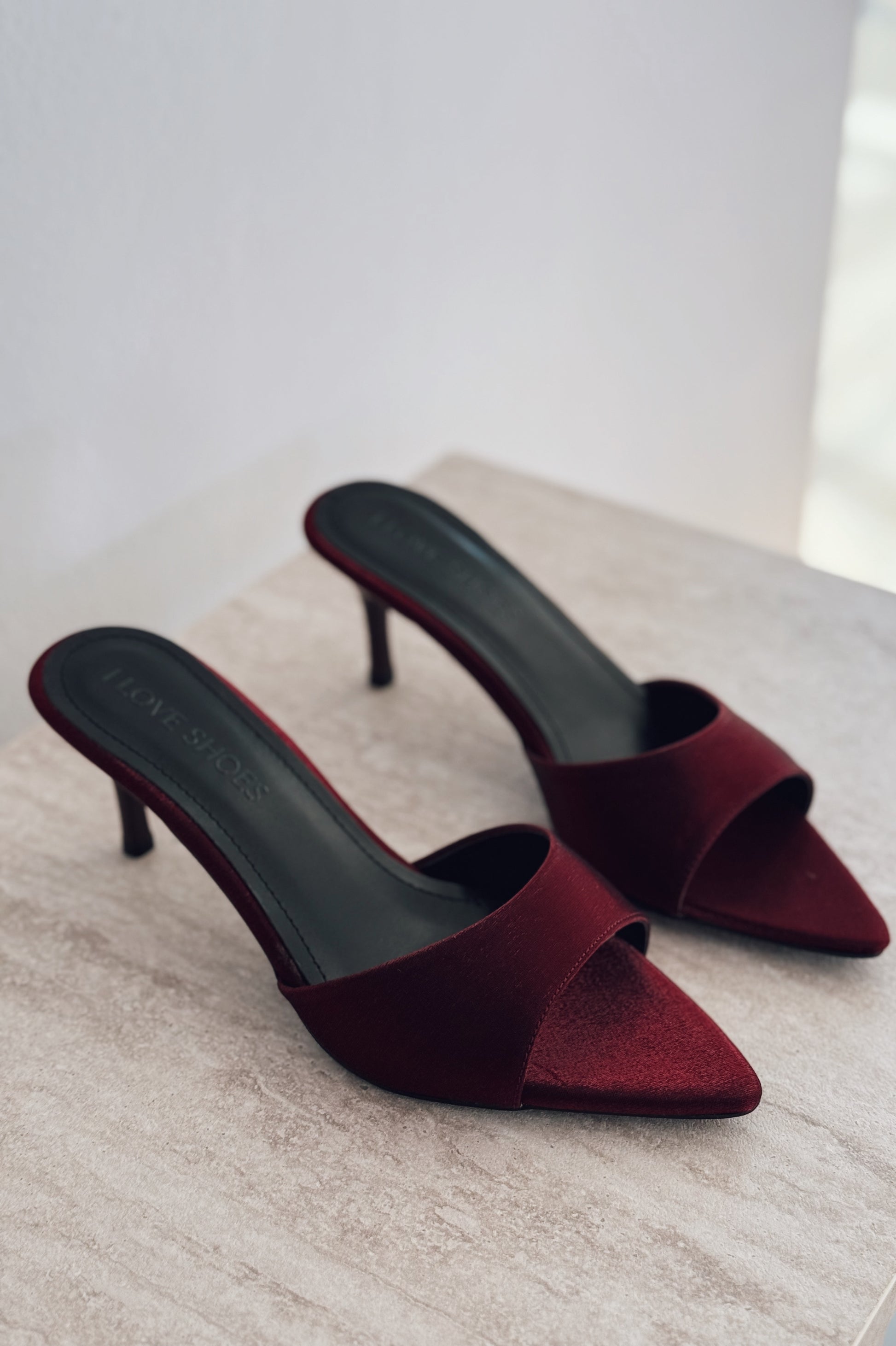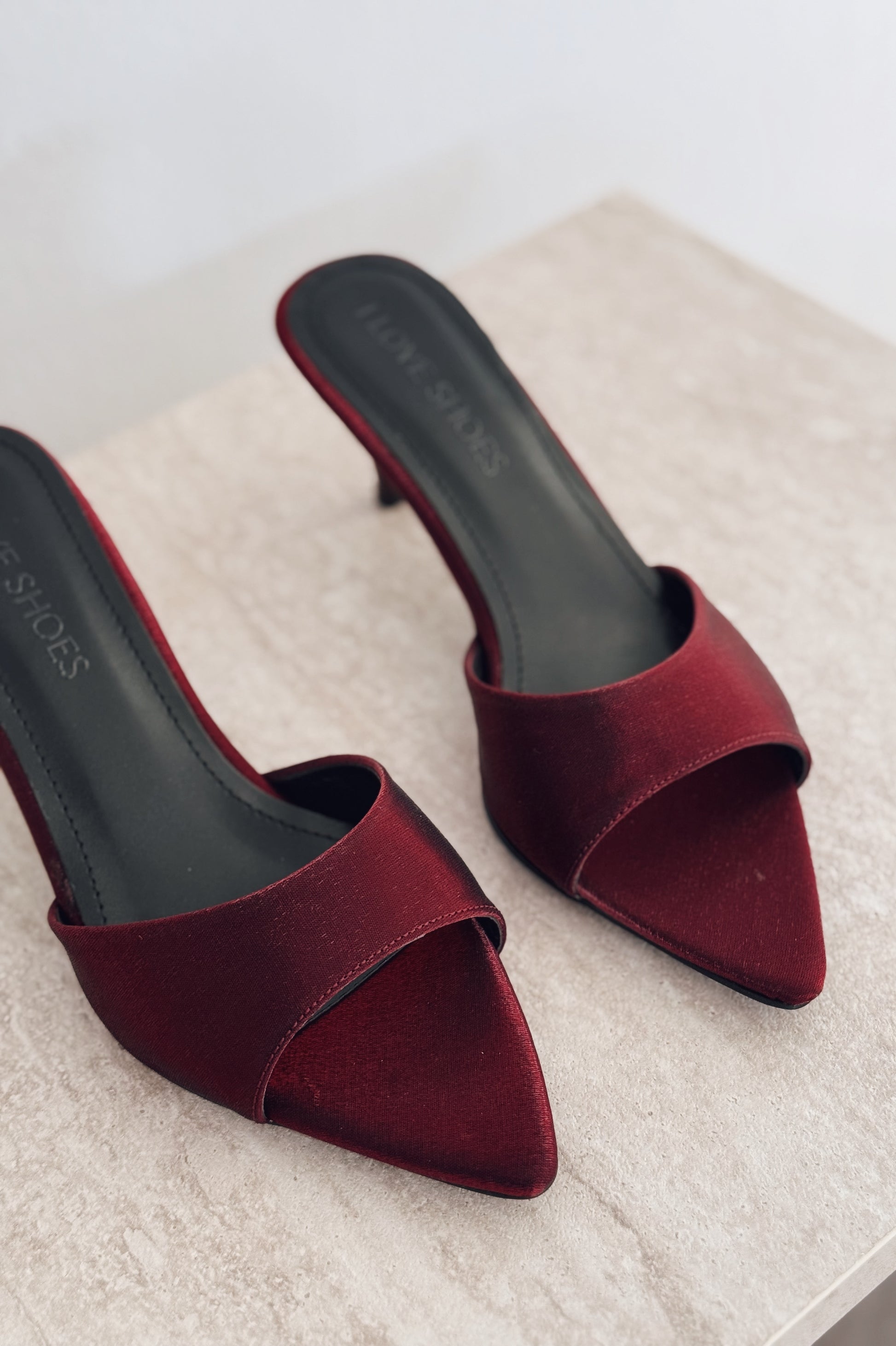 Yonspe Saten İnce Topuklu Terlik Bordo