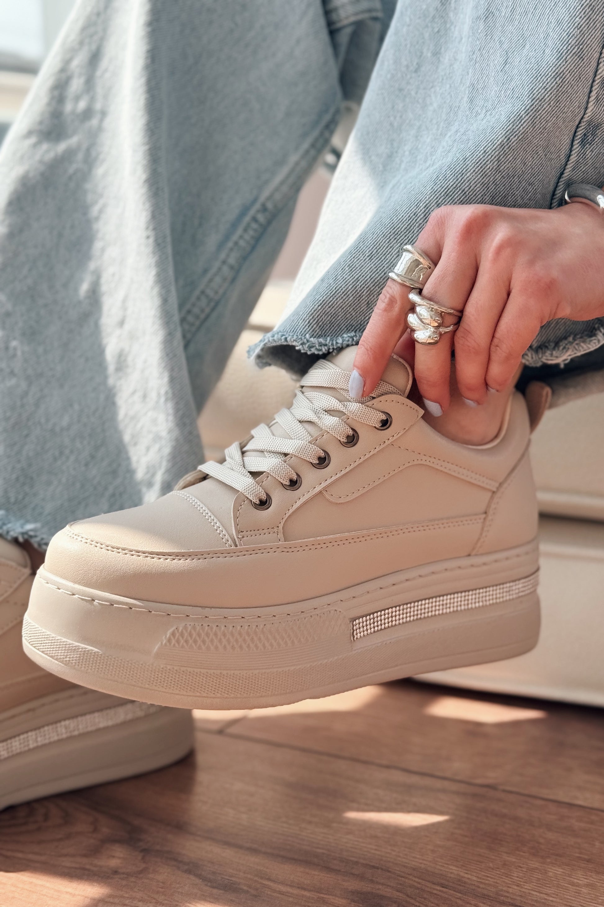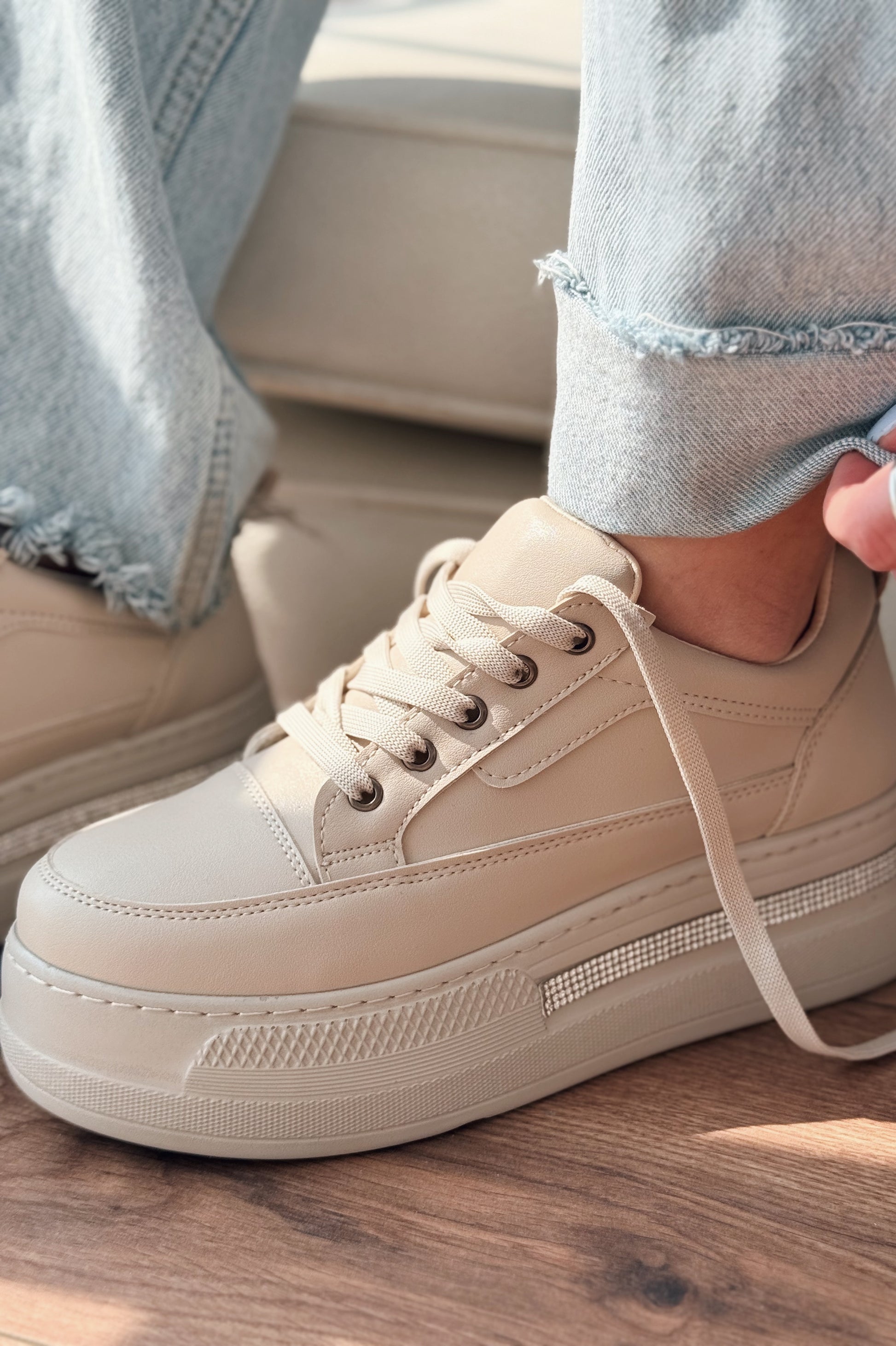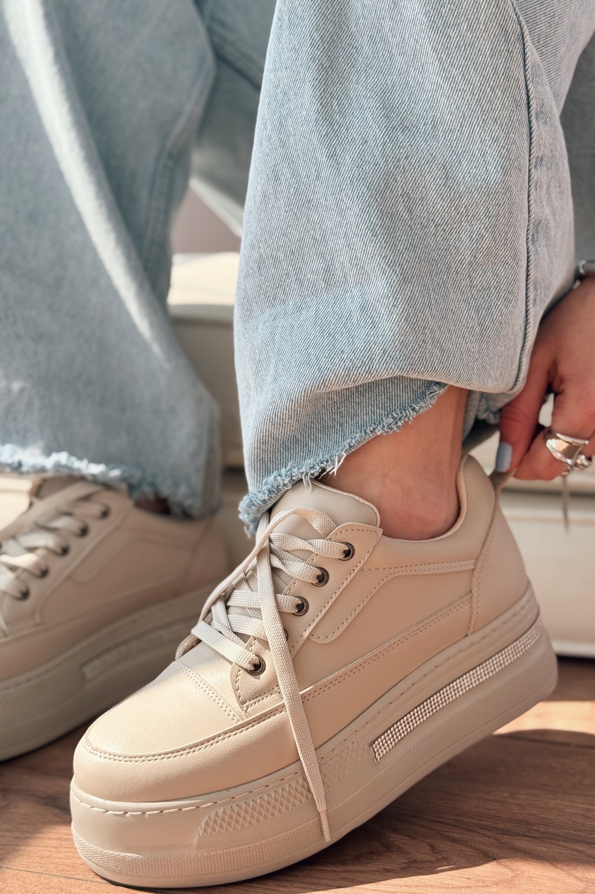 Yovira Nude Bağcıklı Taban Taş Aksesuarlı Günlük Spor Ayakkabı