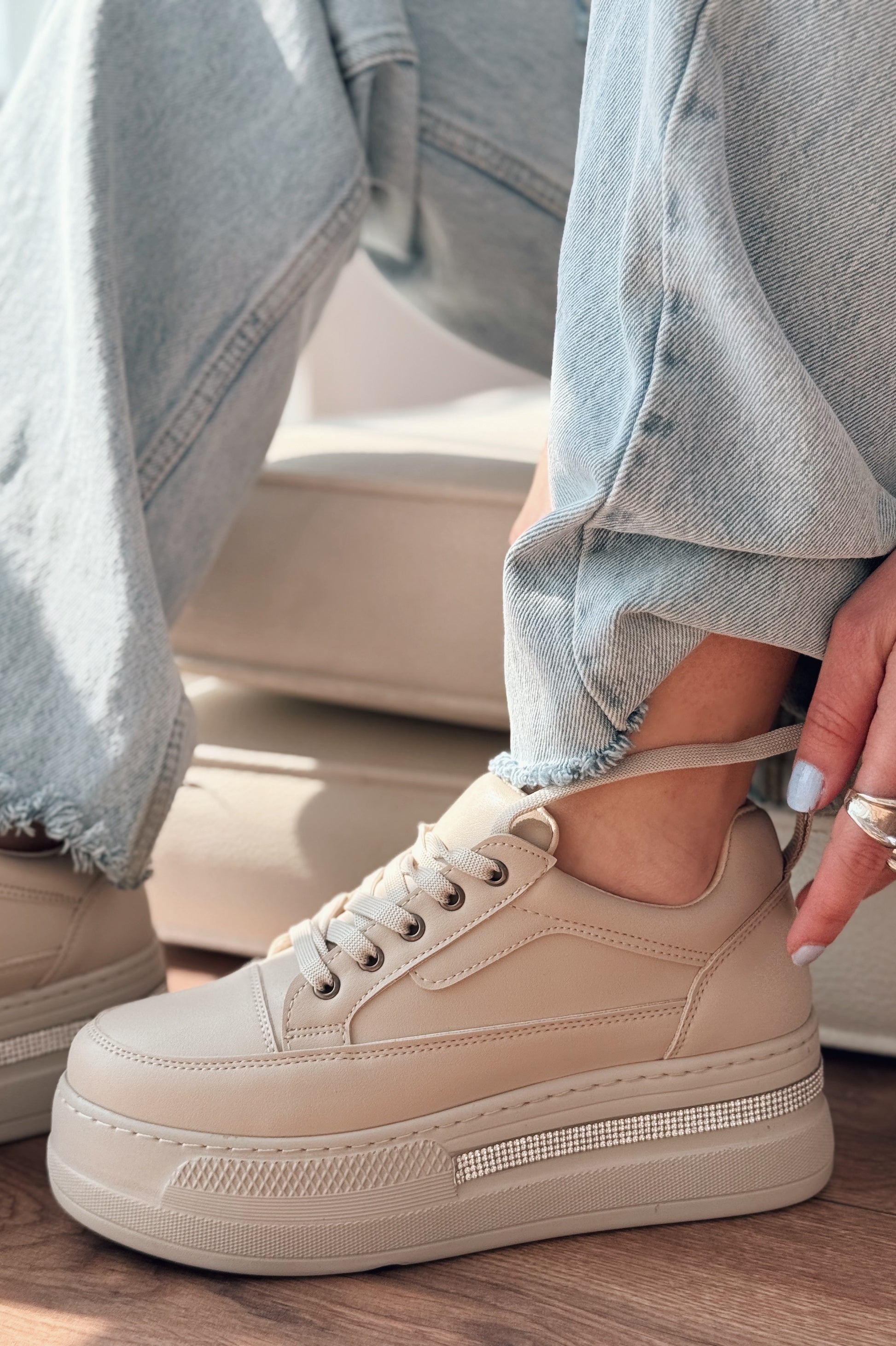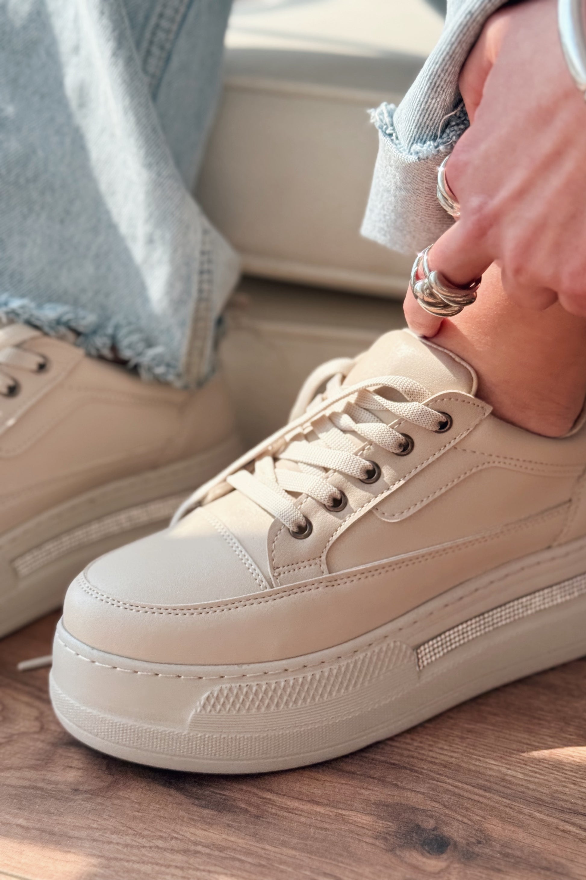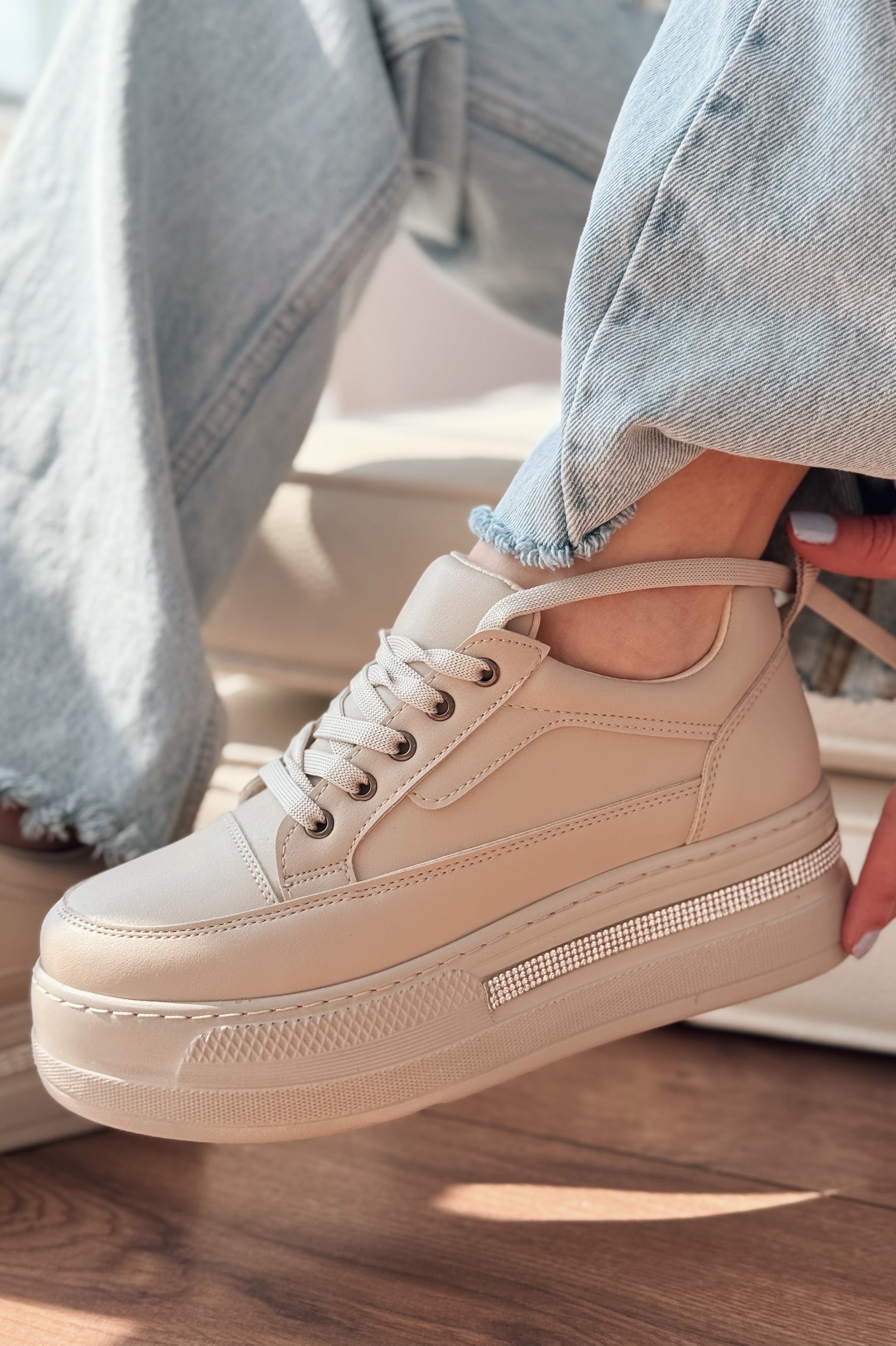 Yovira Nude Bağcıklı Taban Taş Aksesuarlı Günlük Spor Ayakkabı