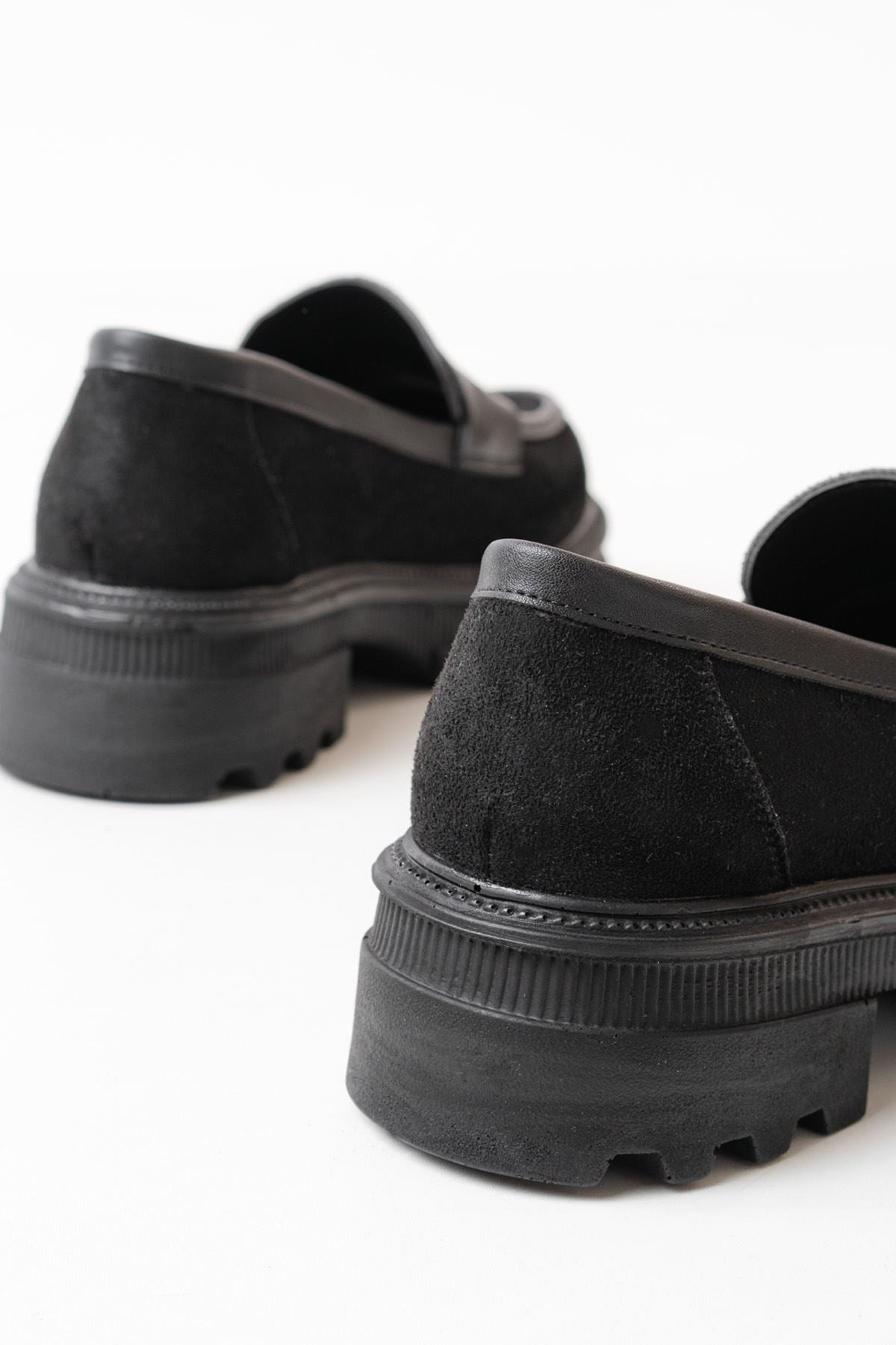 Zarlin Siyah Süet Günlük Yüksek Tabanlı Loafer Ayakkabı